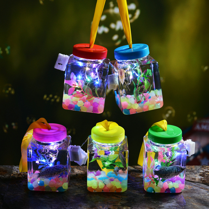 인터넷 유명 야시장 매점 물고기 병 거북 병 버킷 물고기 탱크 물고기 탱크 해파리 컵 휴대용 거북이 상자 빛
