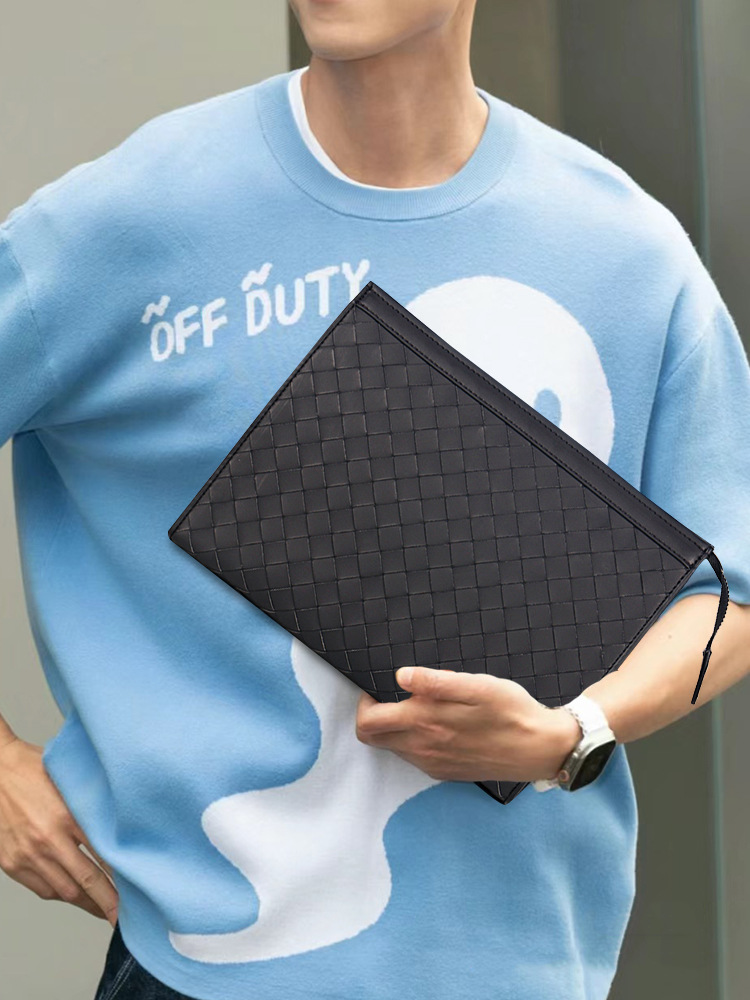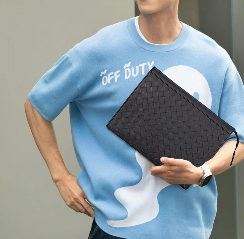 크로스보더 신상 남성용 클러치백, 넓은 스트라이프 패턴 남성 가방, 오일왁스 가죽 핸드백, 대용량 세면도구 가방, 로고 없음스토어 가기