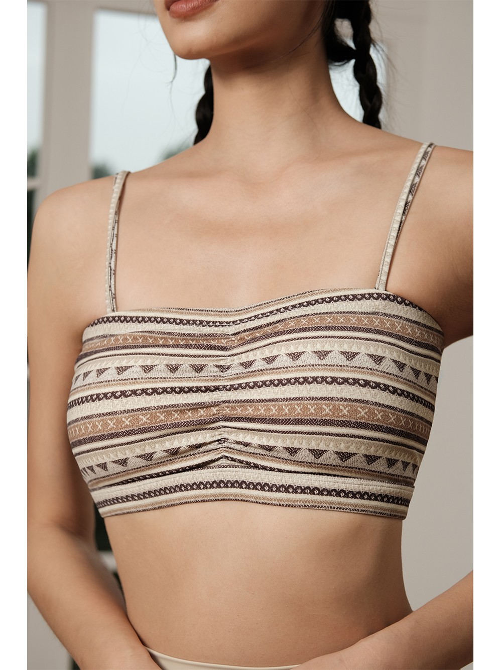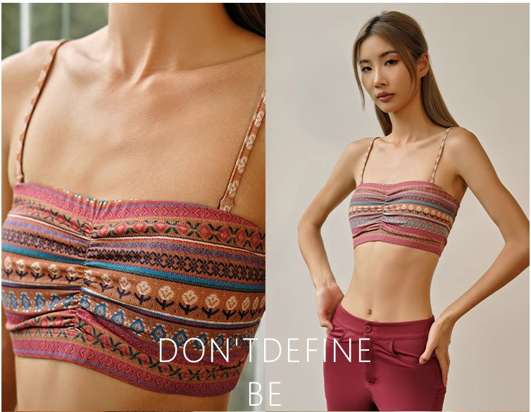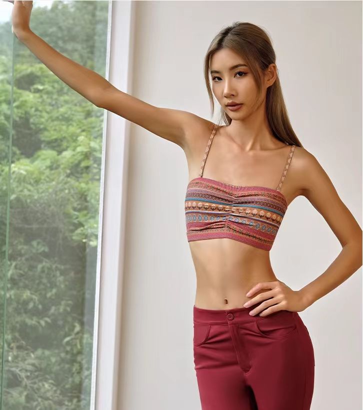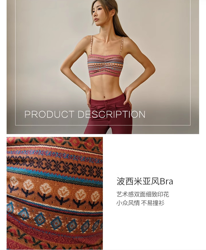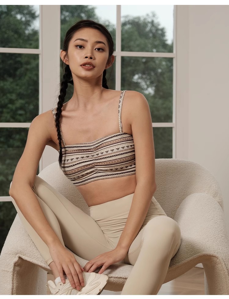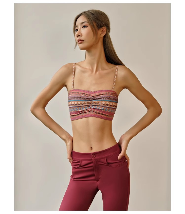 레트로 프린트 스트랩 스포츠 브래지어 여성 피트니스 속옷 가슴 패드 요가 옷 조끼 푸시 업 브래지어