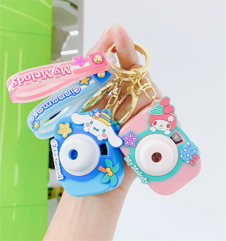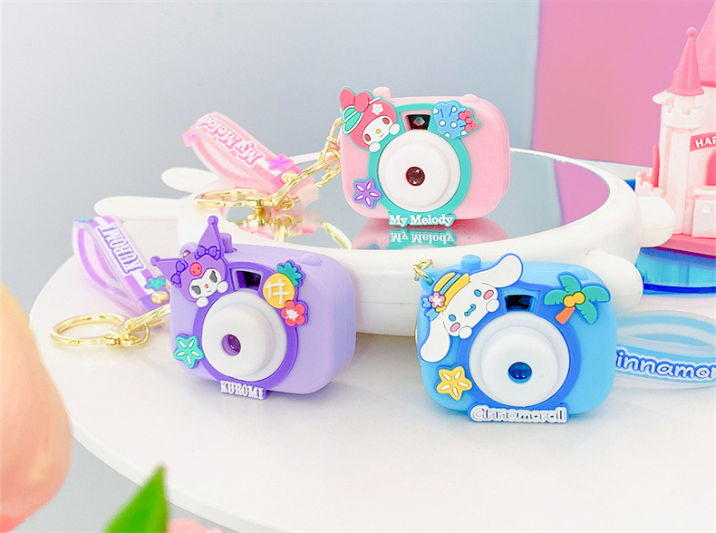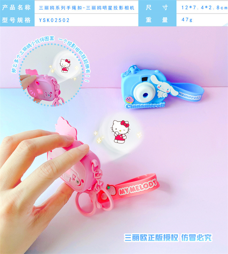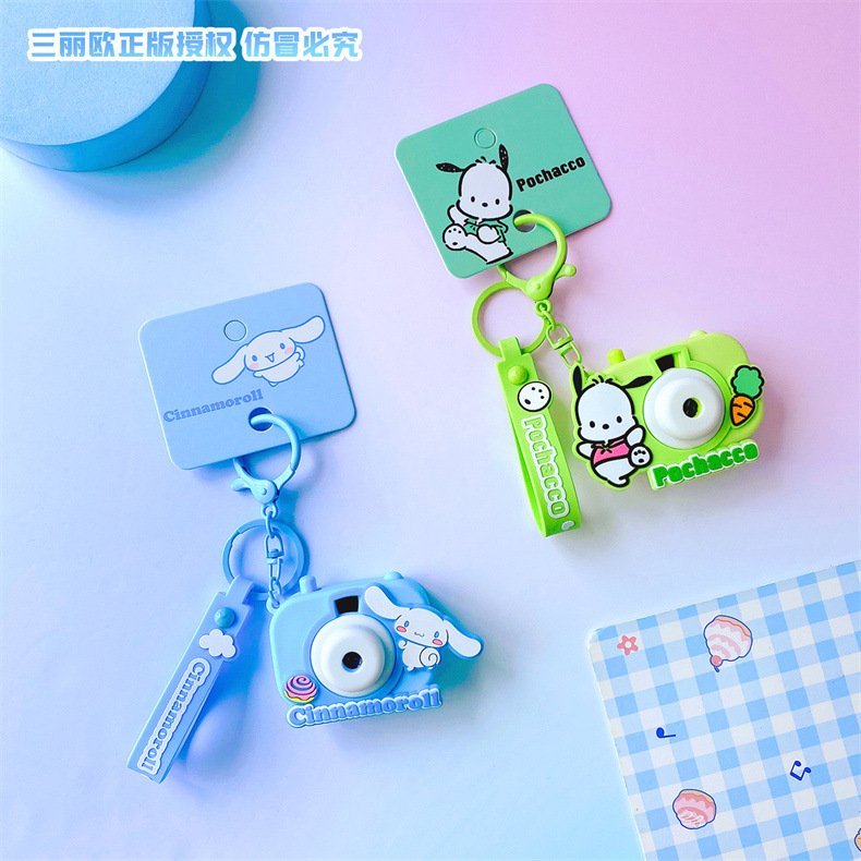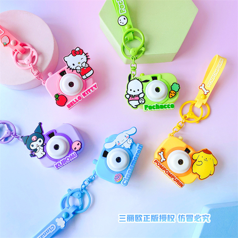 정품 Sanrio 시뮬레이션 프로젝션 카메라 키 체인 어린이 장난감 멜로디 Yugui 개 소녀의 책가방 펜던트스토어 가기