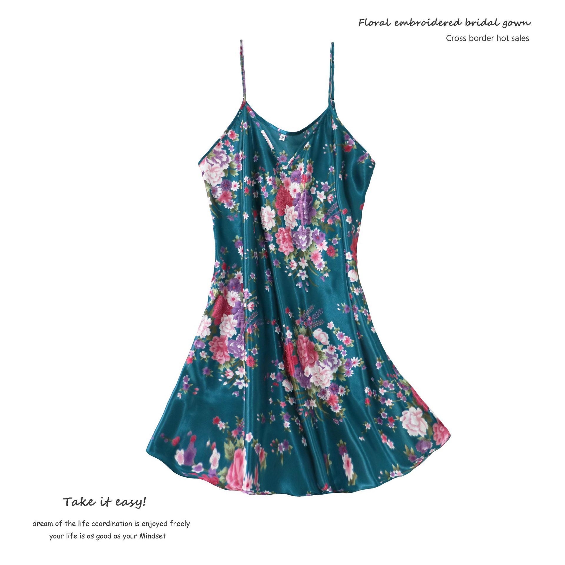 • 女士睡袍欧美仿真丝色丁伴娘和服外贸碎花薄开衫夏季晨袍短款浴袍20折扣价:15