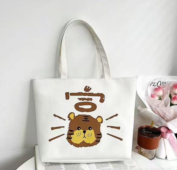 새로운 도착 인쇄 어깨 핸드 헬드 캔버스 여성용 가방 대용량 한국식 토트 대형 가방 예술적 인쇄 학생 도서 가방스토어 가기