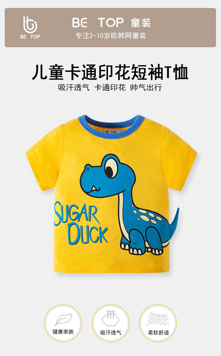 국경 간 아동복 betop 만화 3 차원 공룡 소년 티셔츠 여름 한국 만화 최고 어린이 짧은 소매 헤어 세대스토어 가기