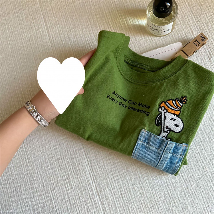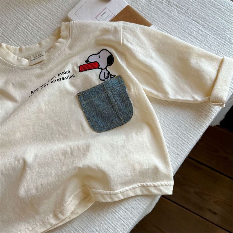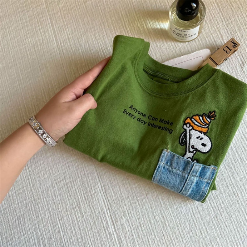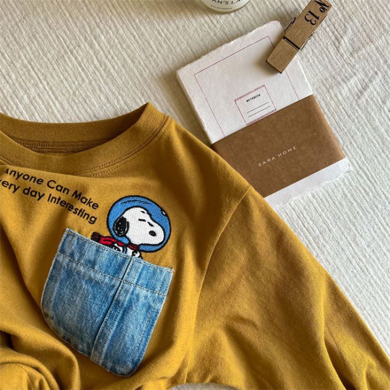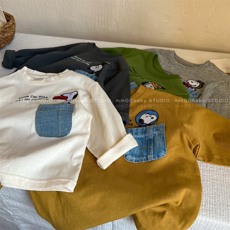 만화 아동복 어린이 간단한 티셔츠 긴 소매 2023 소년 소녀 봄 새로운 포켓 아기 만화 최고 유행스토어 가기