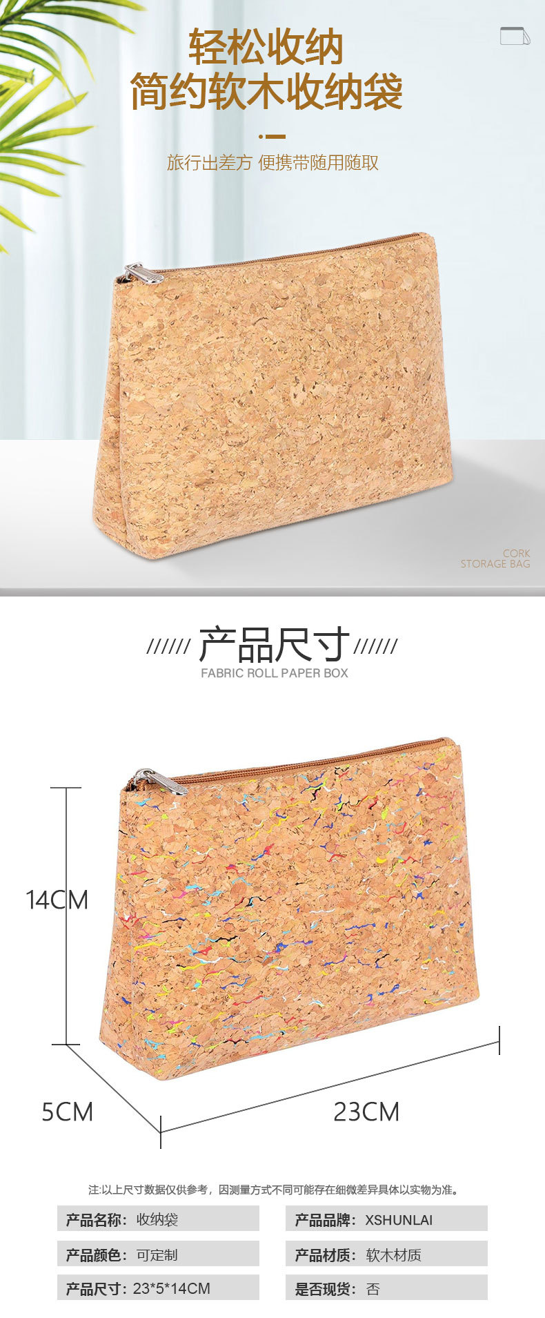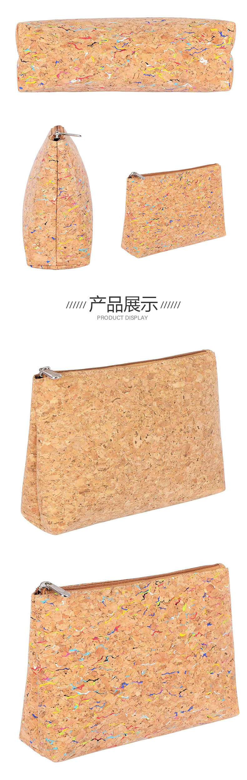 맞춤형 기본 색상 코르크 화장품 가방 보관 가방 소형 여행 휴대용 세면 용품 및 화장품 Amazon 핫 스타일스토어 가기