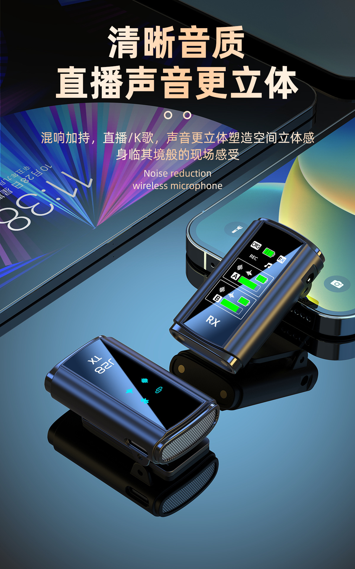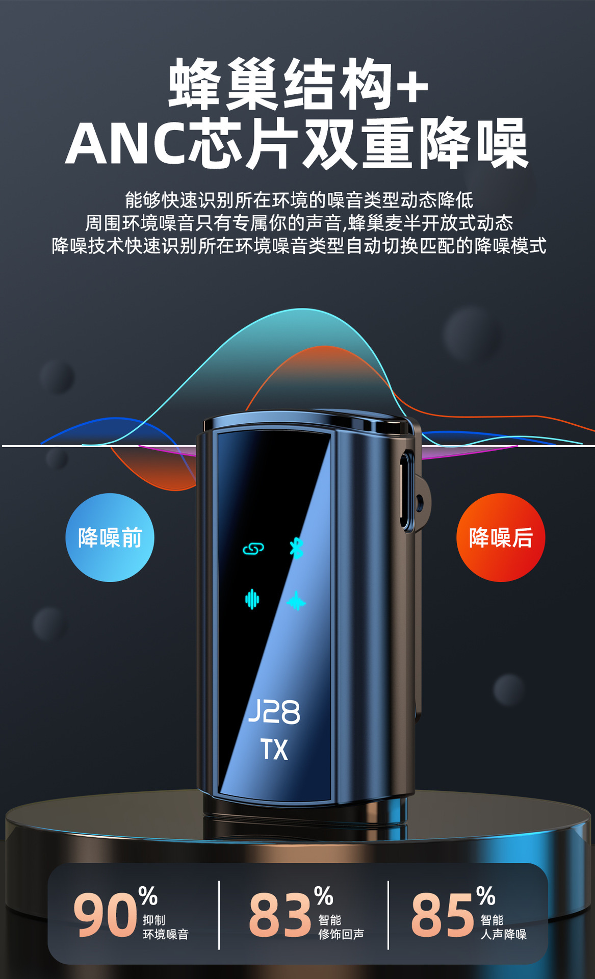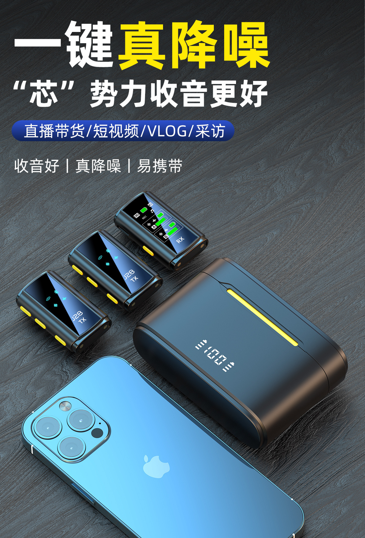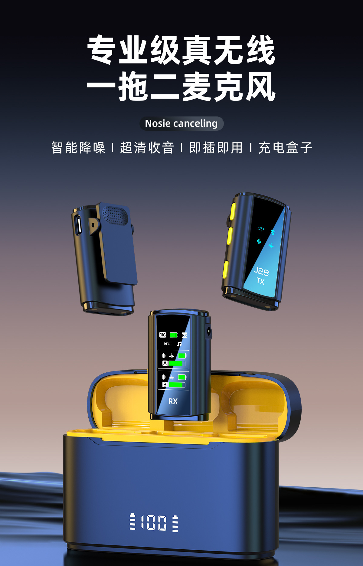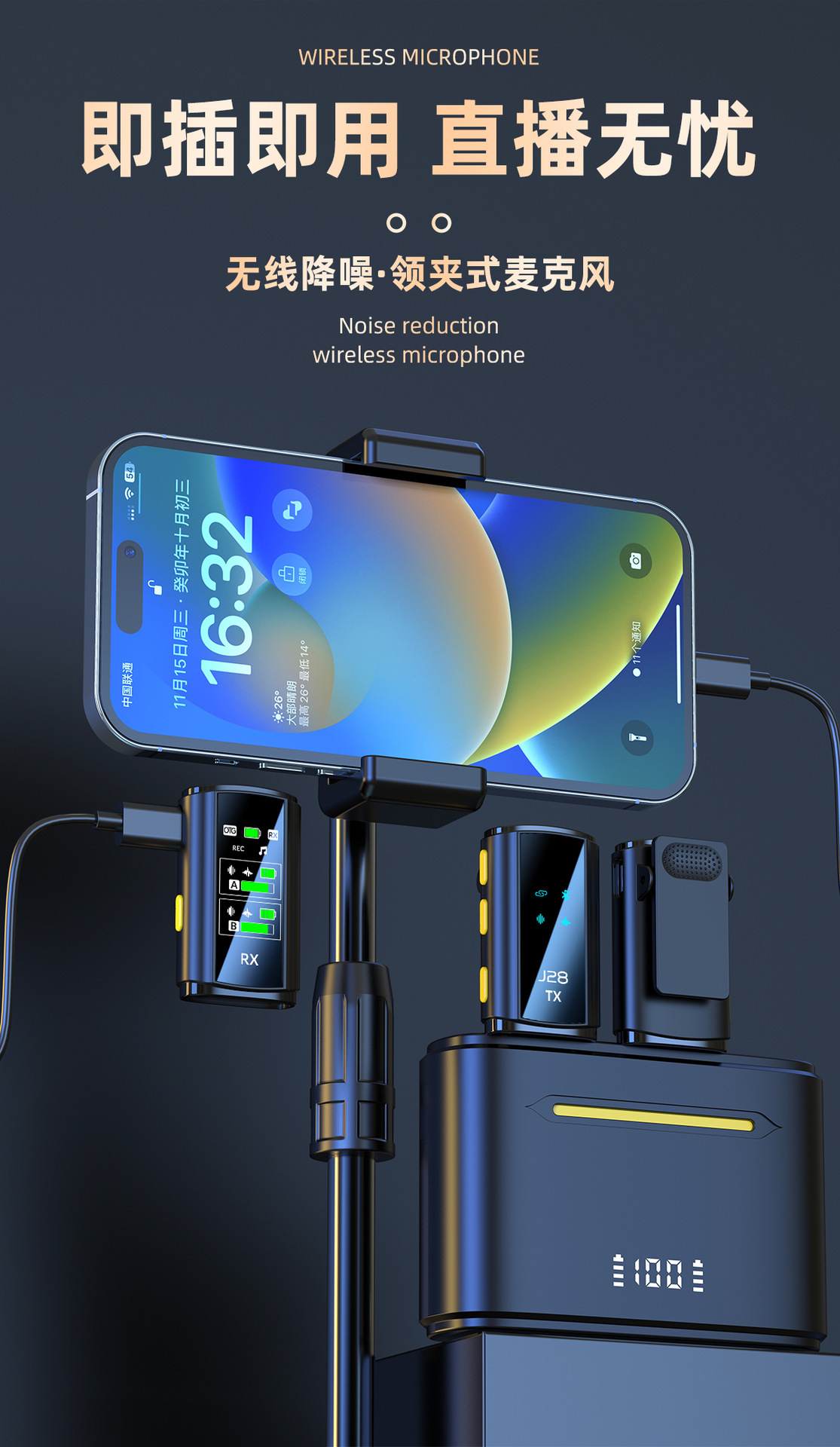 개인 모델 새로운 J28 무선 칼라 클립 마이크 리버브 지능형 라디오 소음 감소 마이크 미니 라이브 방송 휴대 전화 마이크스토어 가기