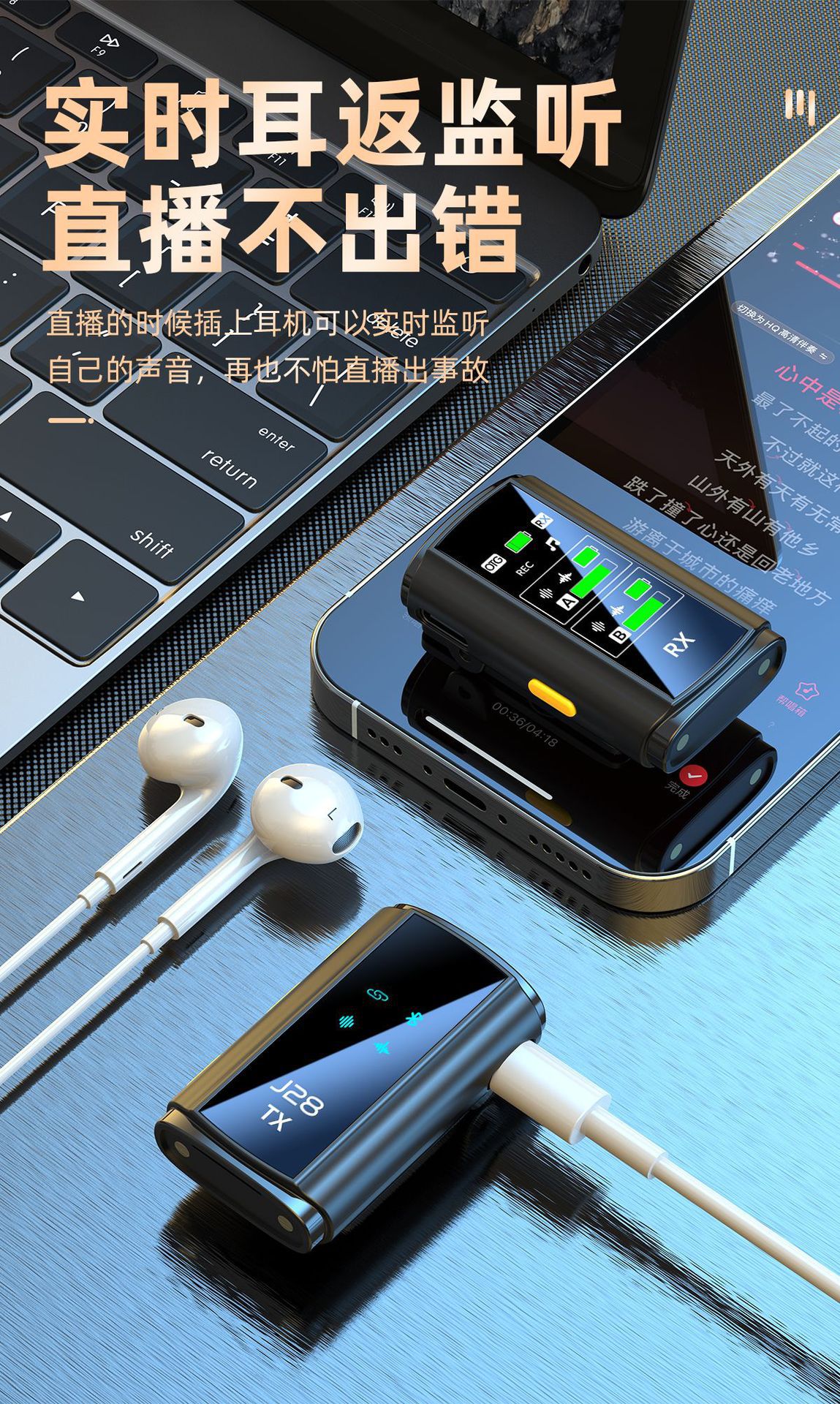 개인 모델 새로운 J28 무선 칼라 클립 마이크 리버브 지능형 라디오 소음 감소 마이크 미니 라이브 방송 휴대 전화 마이크