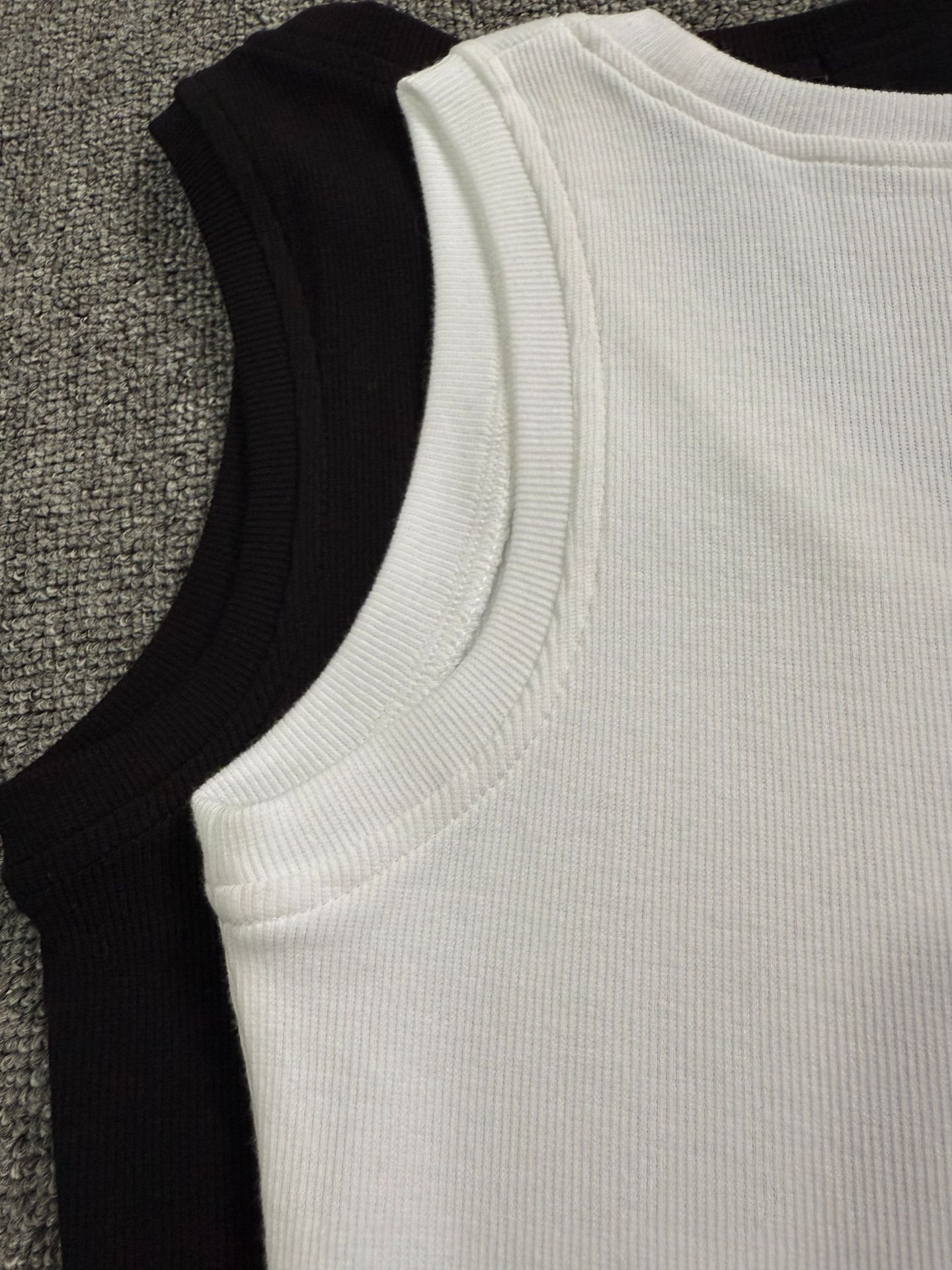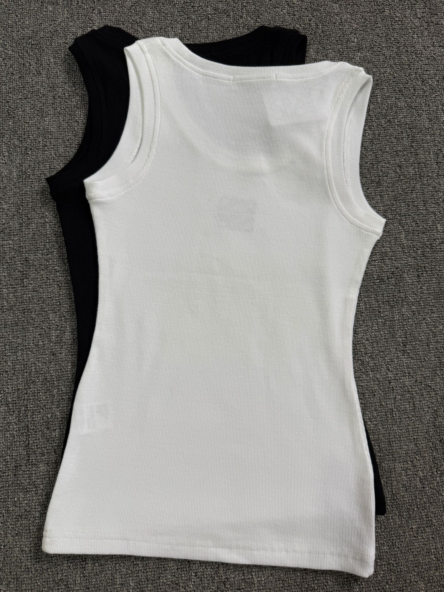 스레드 자수 로고 라운드넥 베스트 여성용 슬림핏 이너 티셔츠 민소매 베이스탑 다용도 26 신상품