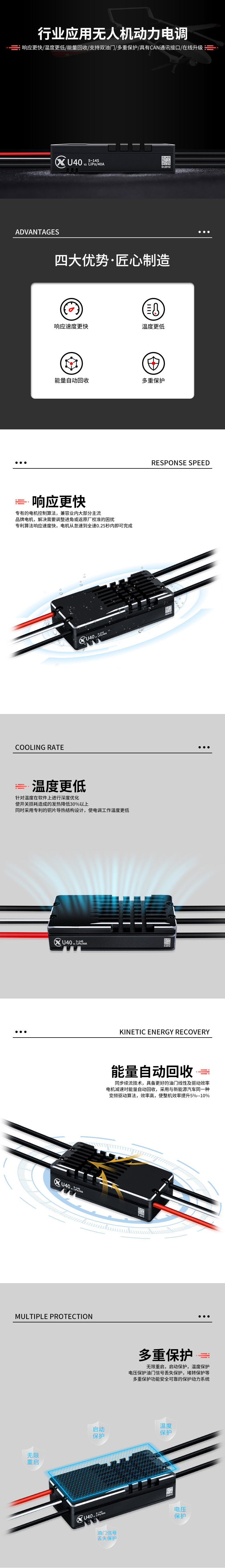 Xiongcai U40 UAV ESC 멀티 로터 고정 날개 수직 이륙 및 착륙 UAV 14S/40A 브러시리스 ESC스토어 가기
