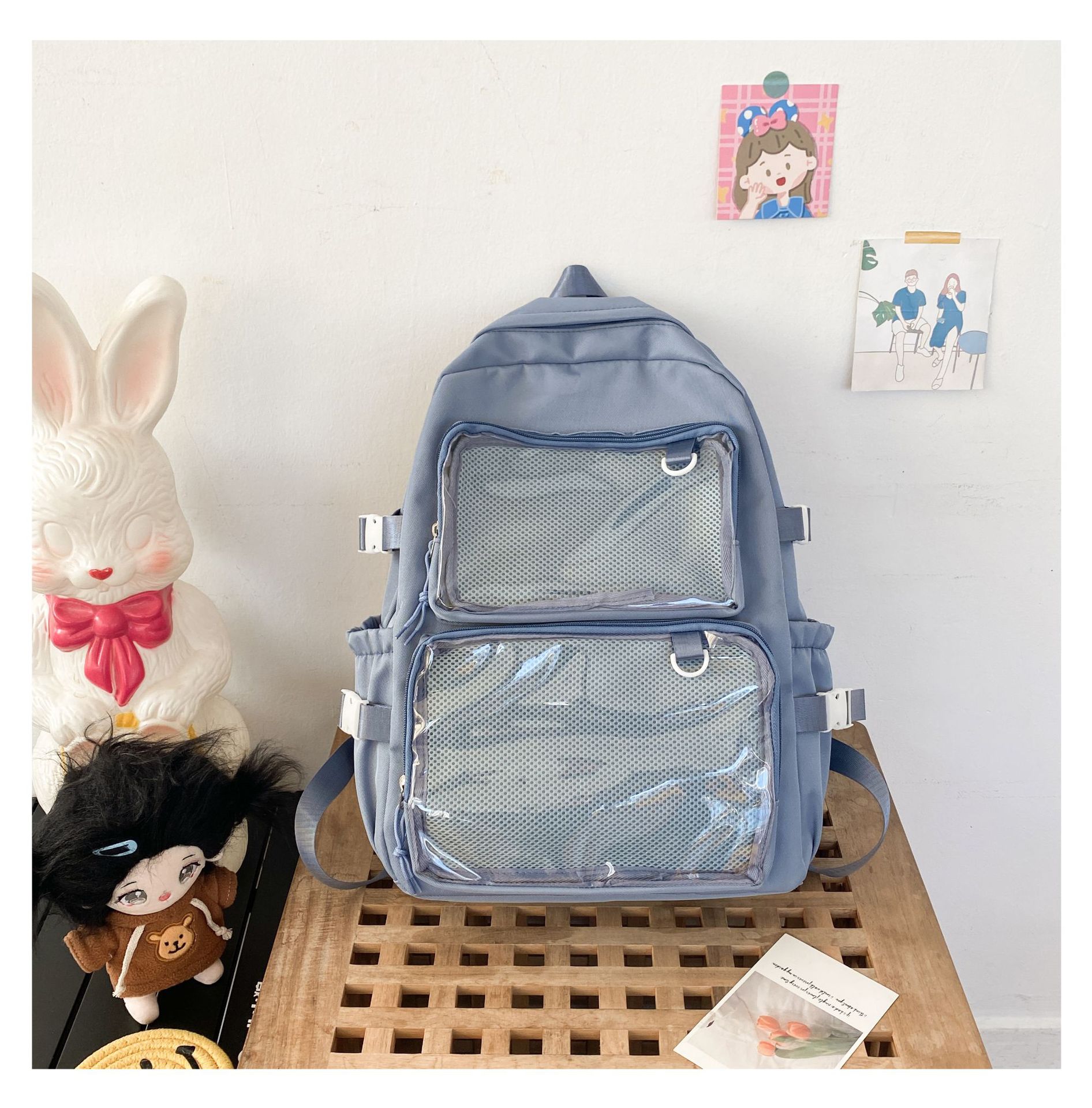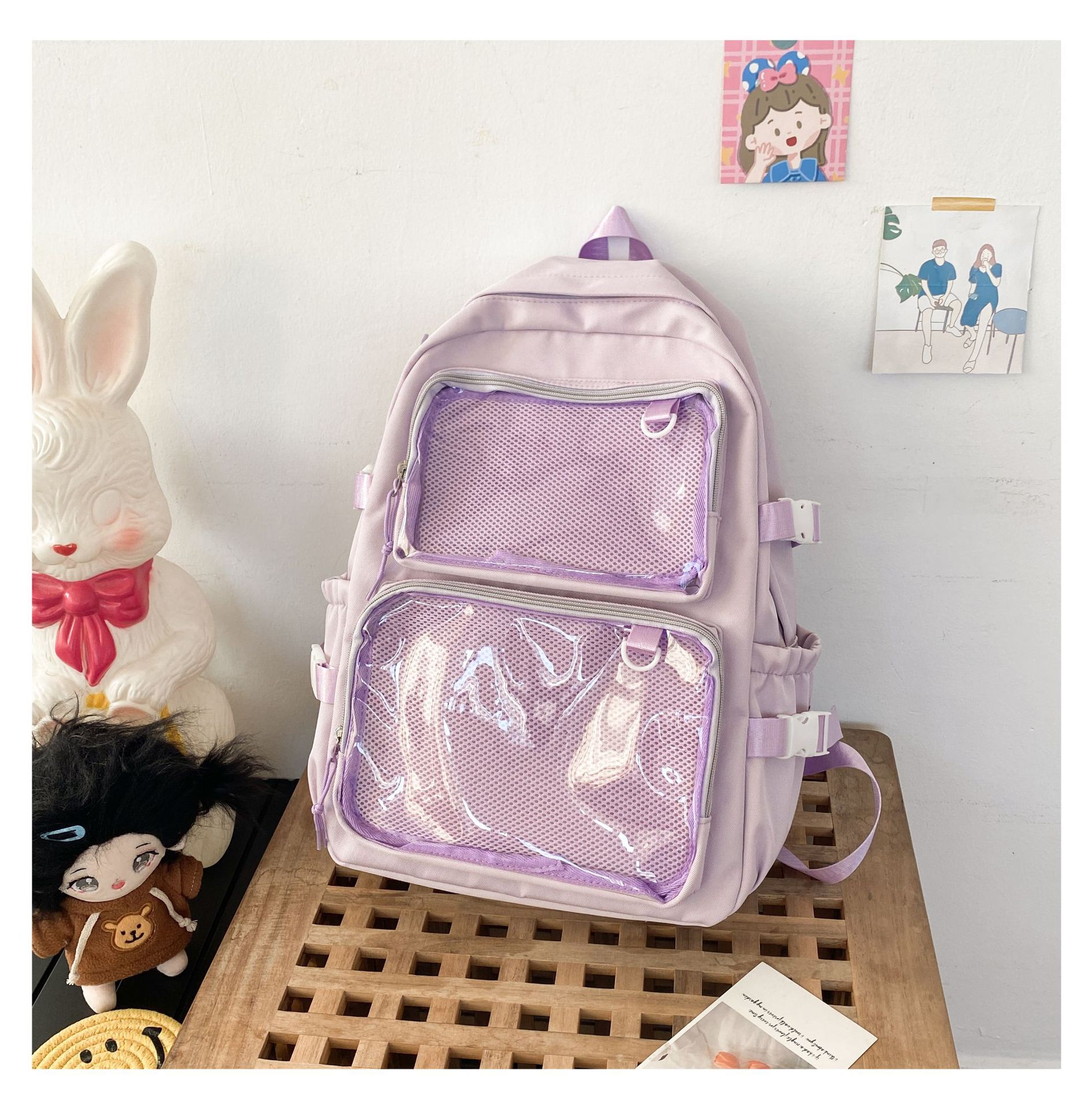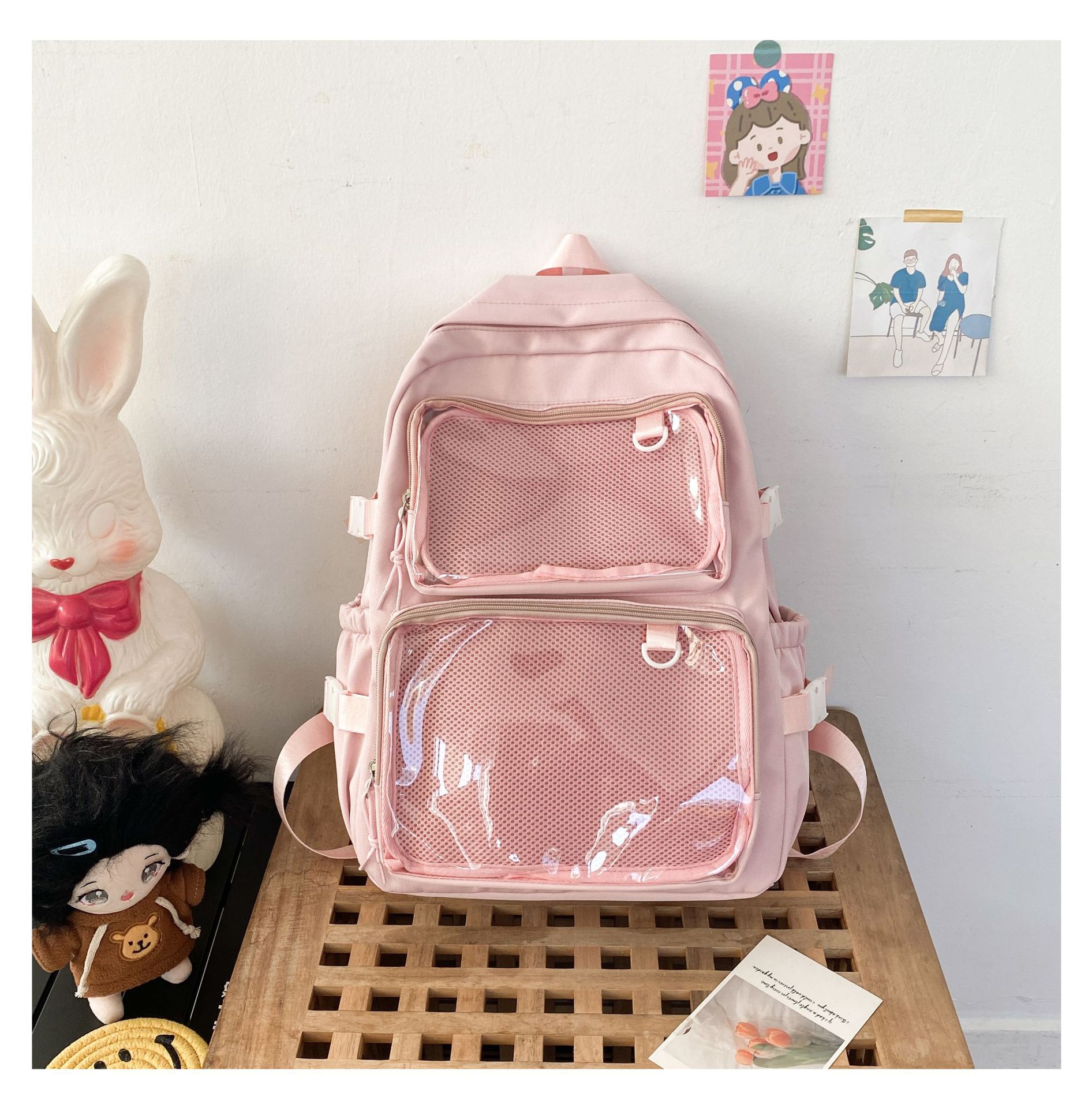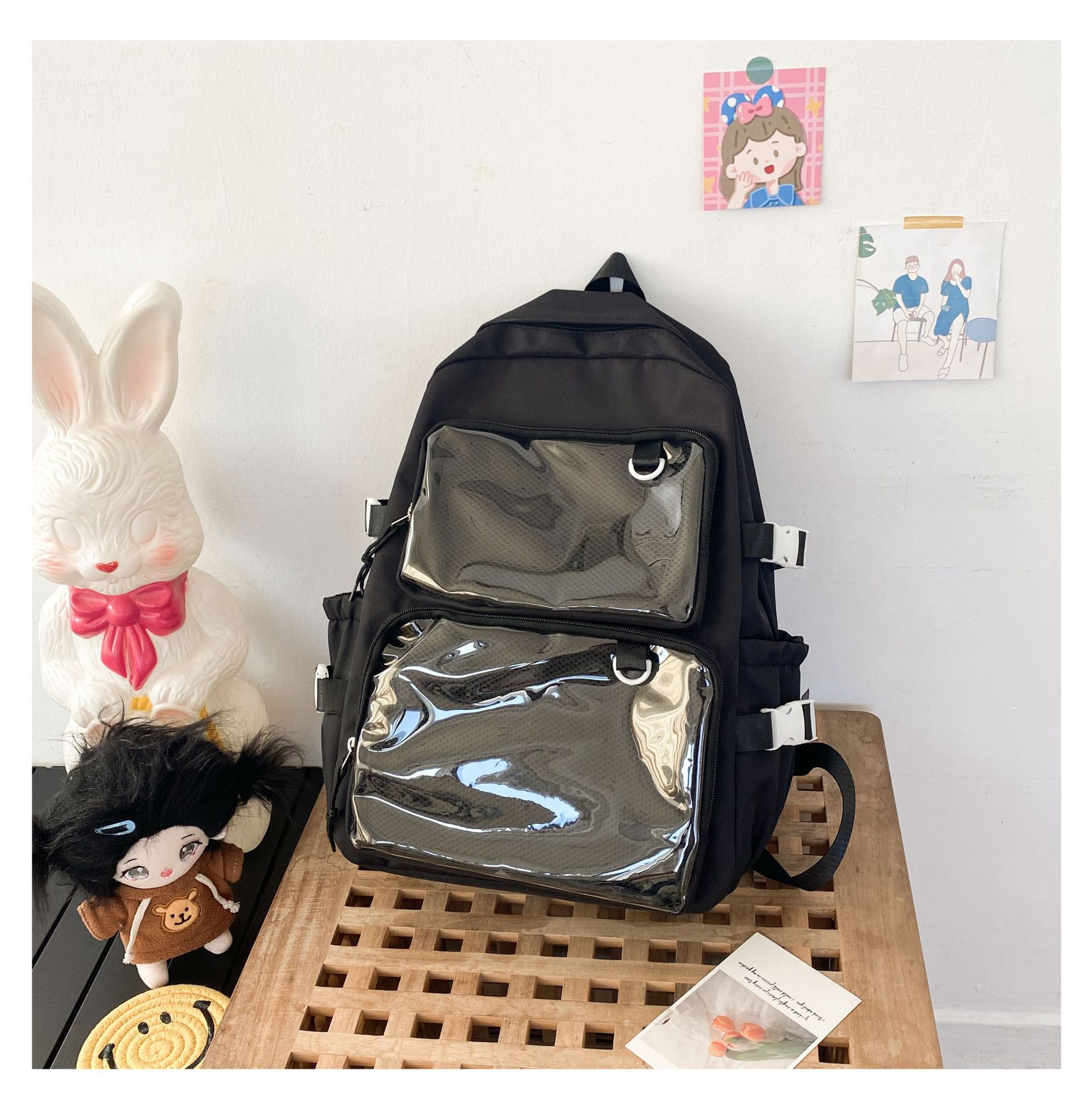 일본식 투명 배지 통증 가방 배낭 여성 2 차원 코믹 온 JK 스쿨백 학생 소녀 배낭스토어 가기