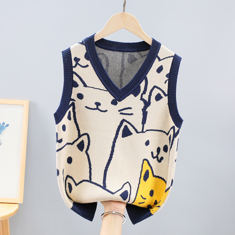 어린이 조끼 소년 스웨터 가을과 겨울 스웨터 기모 두꺼운 따뜻한 옷 중간 및 큰 아이들 6-15 세 소년 양복 조끼