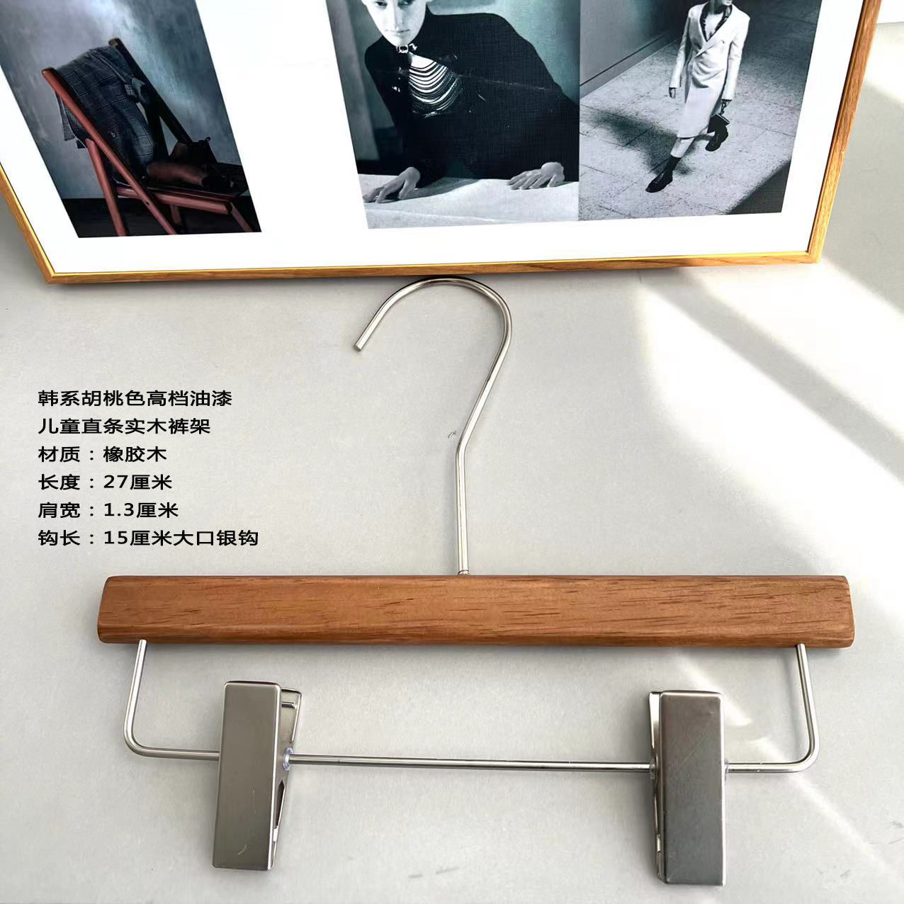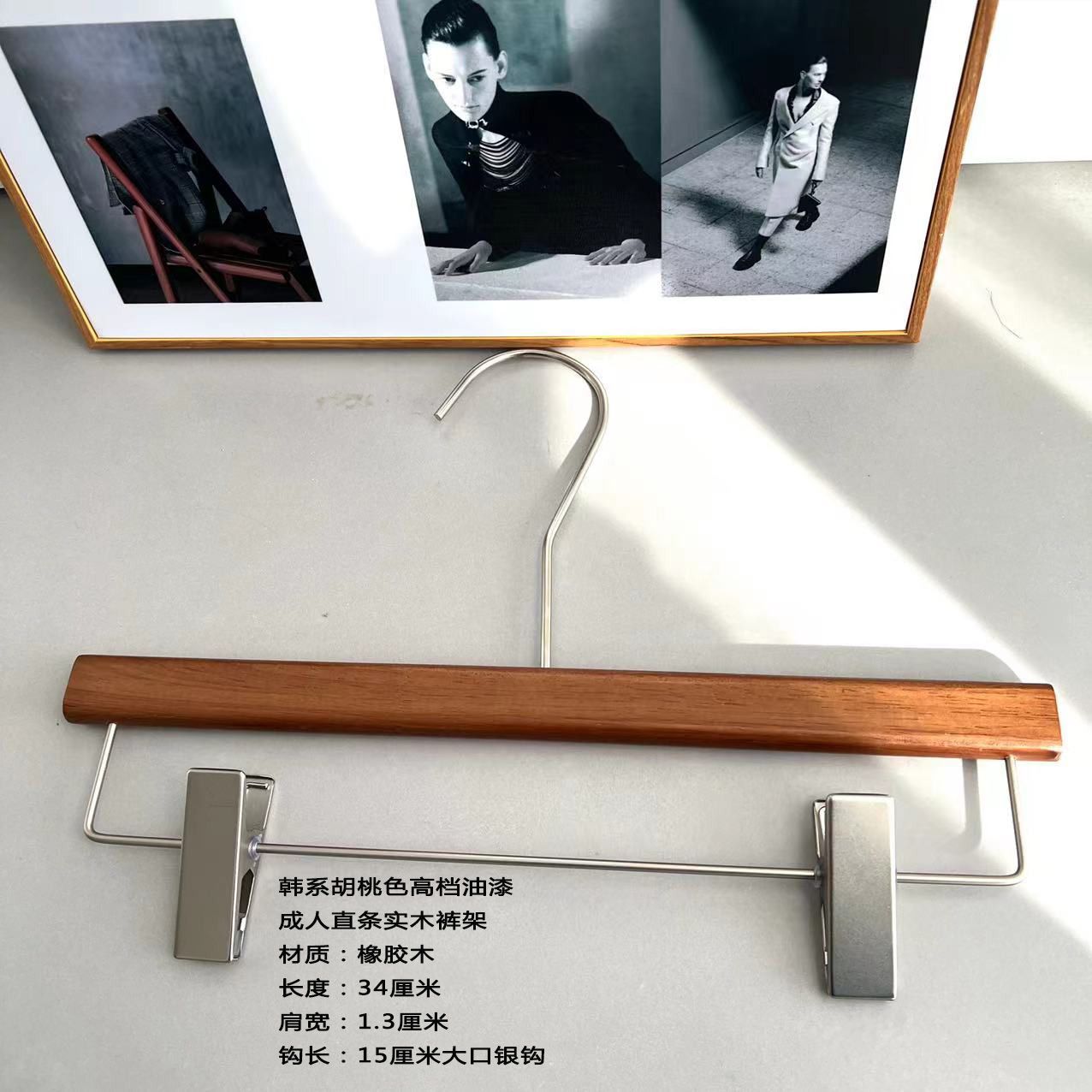 의류 매장 특수 솔리드 우드 행거 호두 컬러 목재 미끄럼 방지 원활한 의류 지원 여성 남성 의류 옷걸이 바지 랙 도매스토어 가기