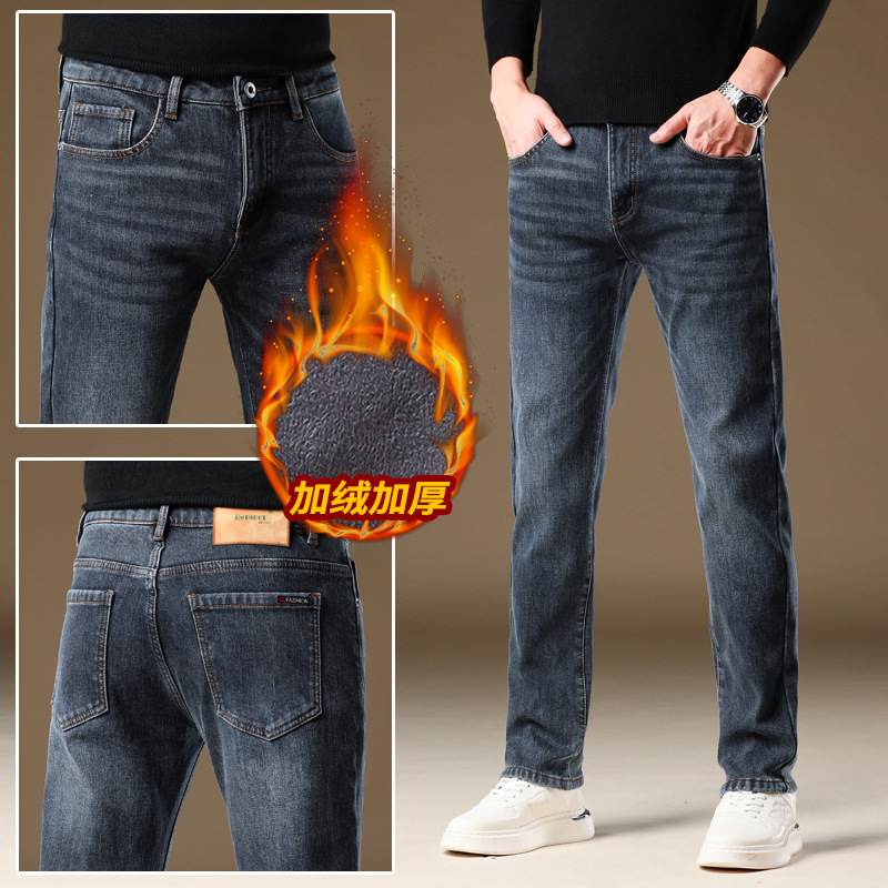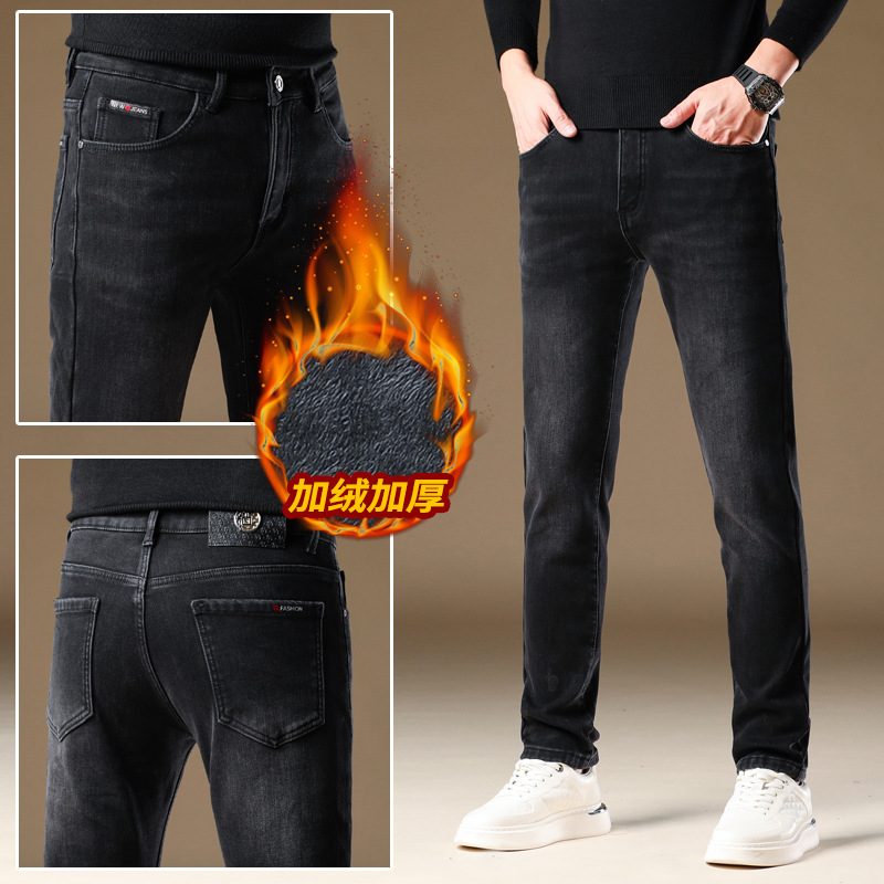 미국 하이 엔드 청바지 남성용 슬림 스트레이트 남성 패션 브랜드 비즈니스 2024 가을과 겨울 새로운 패션 기모 바지스토어 가기