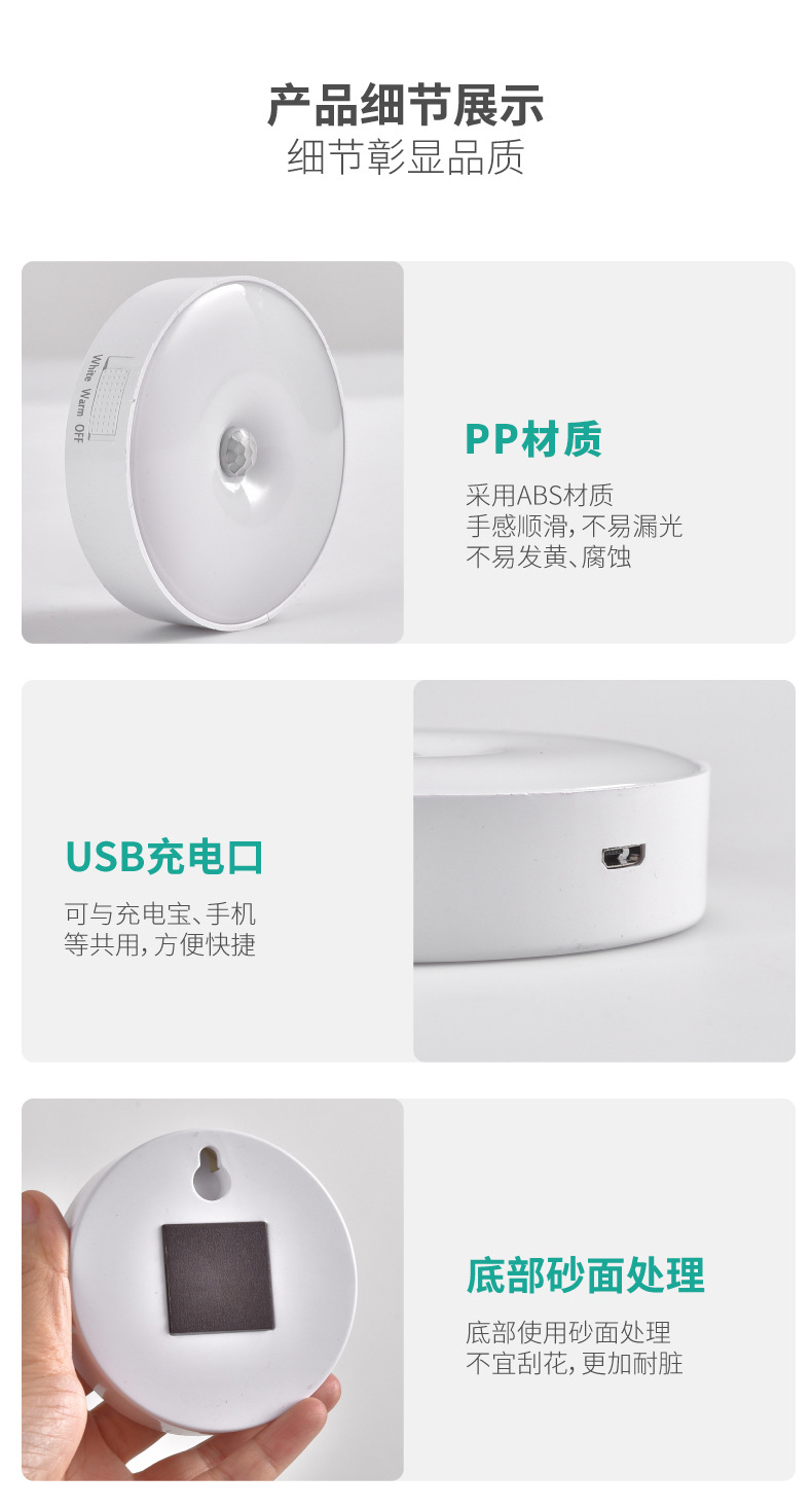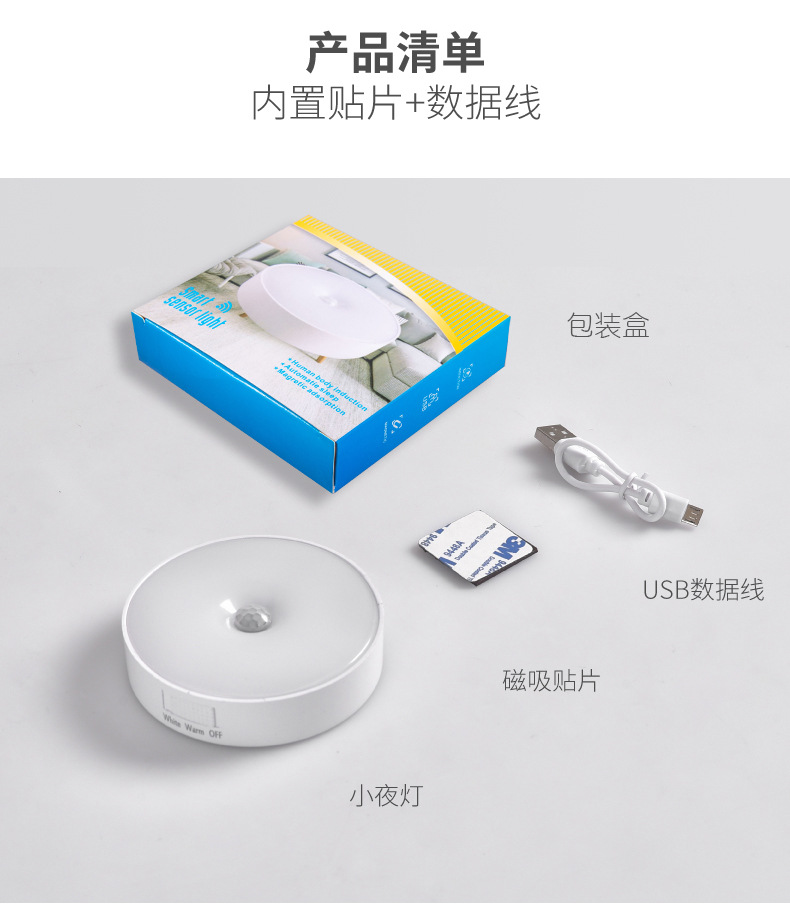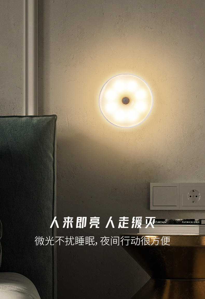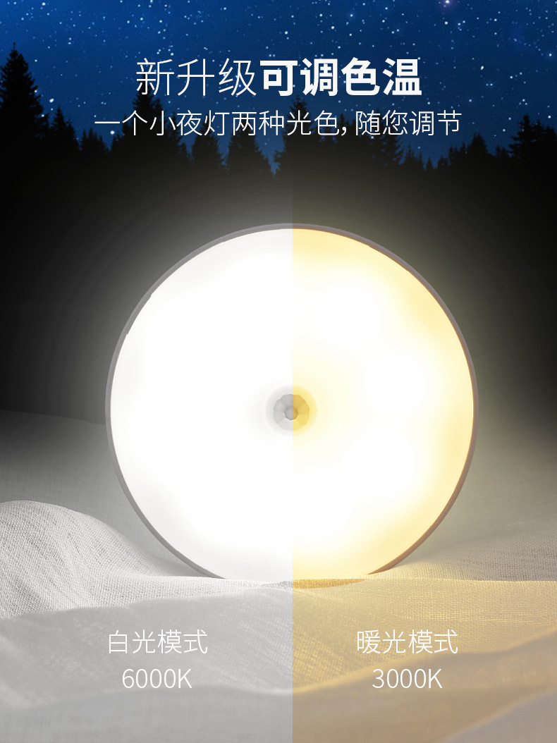 국경 도매 지능형 인체 유도 야간 조명 홈 캐비닛 조명 충전 폭발 침대 옆 램프 창조적 인 선물
