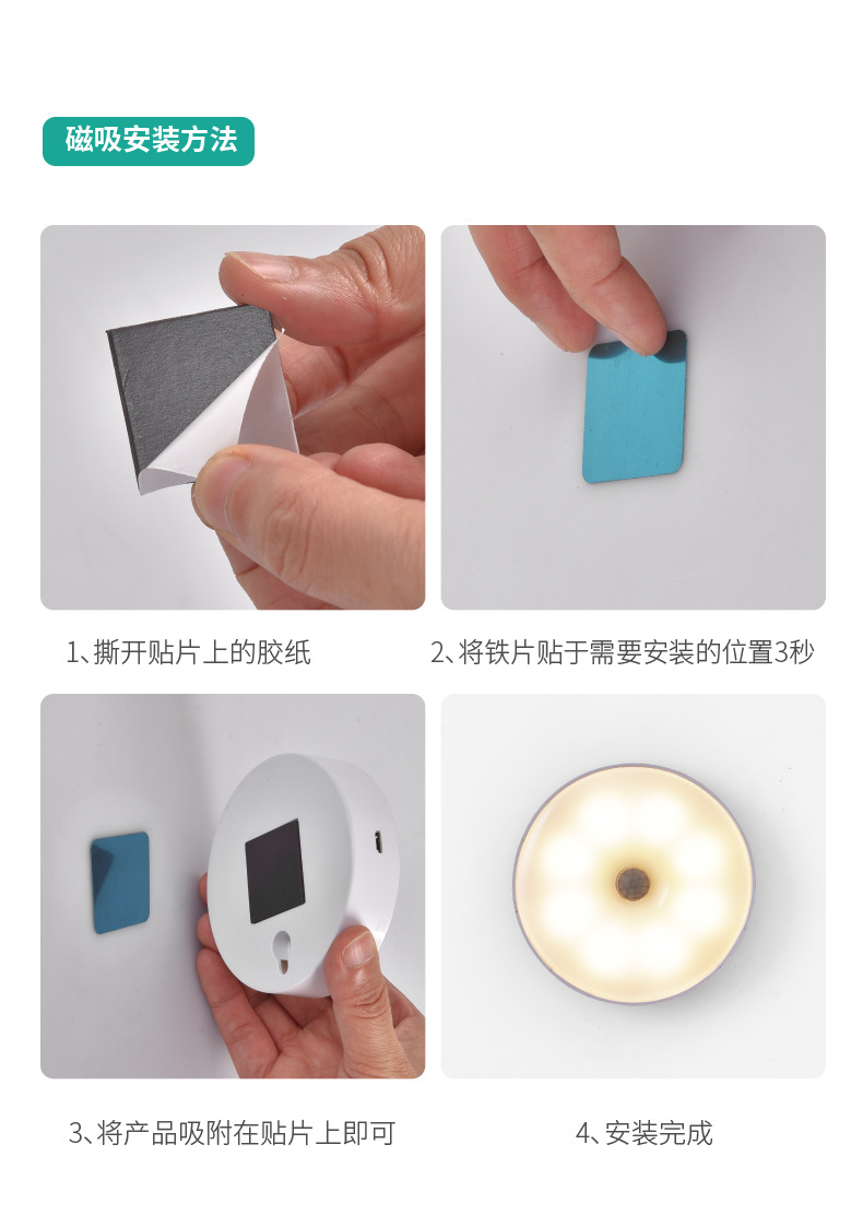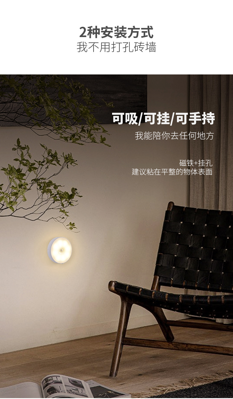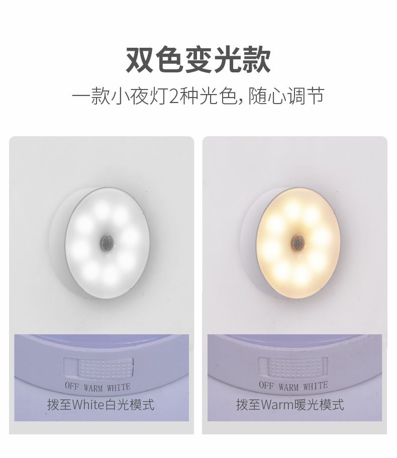 국경 도매 지능형 인체 유도 야간 조명 홈 캐비닛 조명 충전 폭발 침대 옆 램프 창조적 인 선물