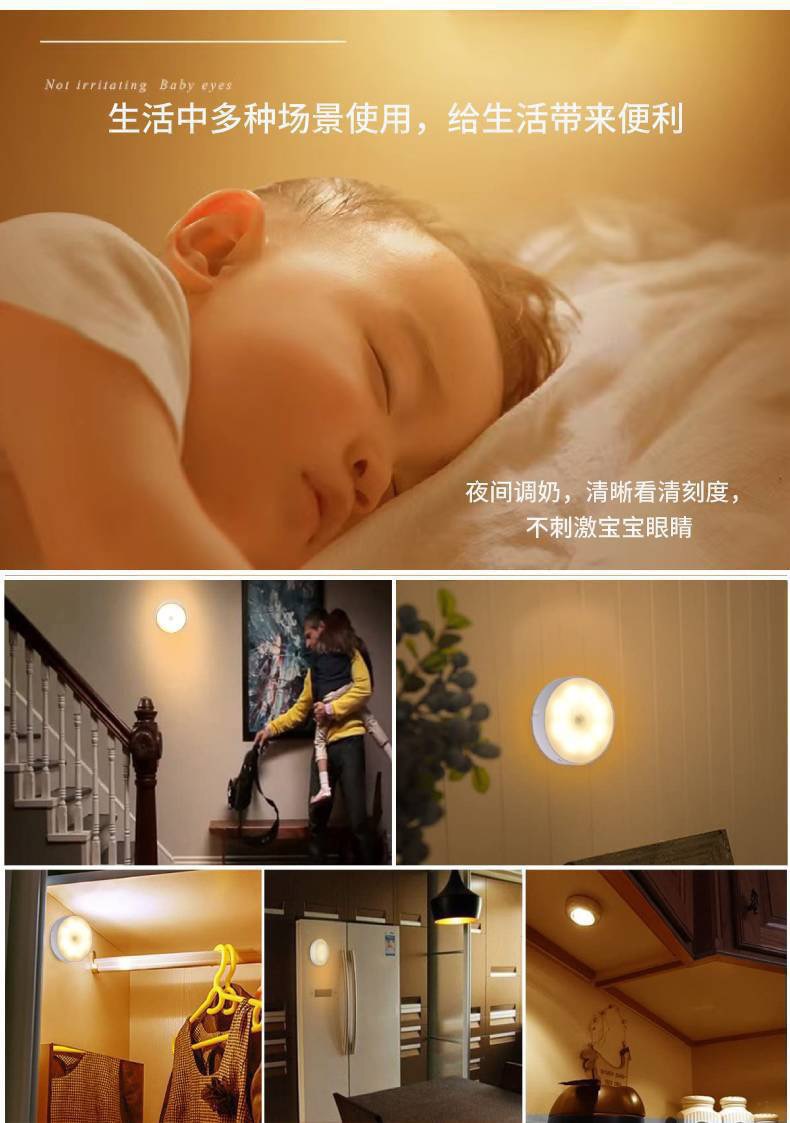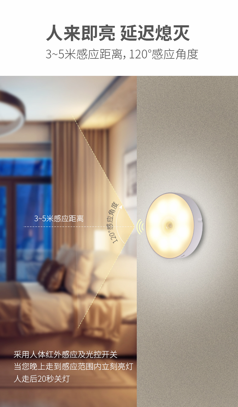 국경 도매 지능형 인체 유도 야간 조명 홈 캐비닛 조명 충전 폭발 침대 옆 램프 창조적 인 선물스토어 가기