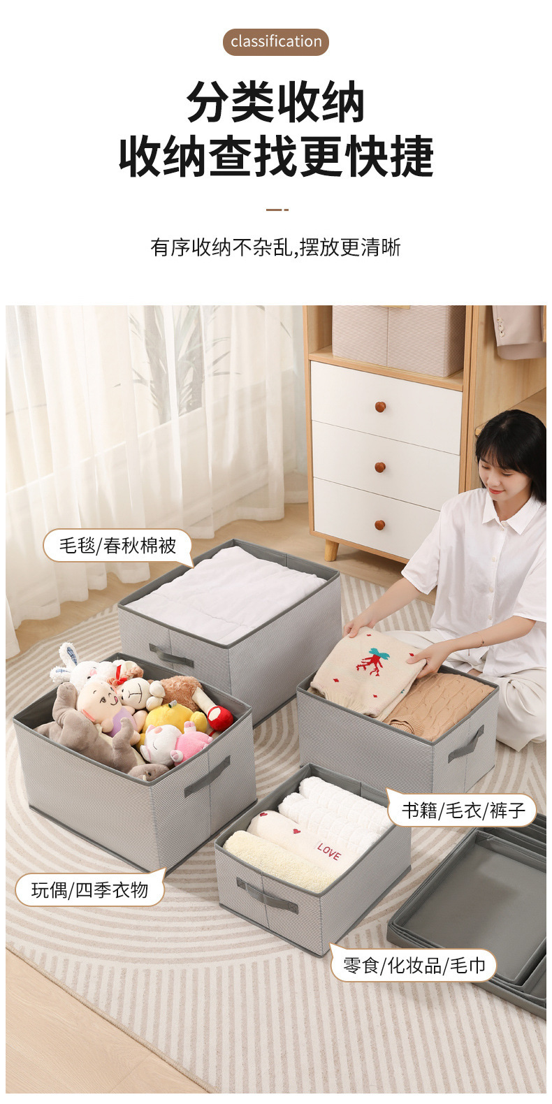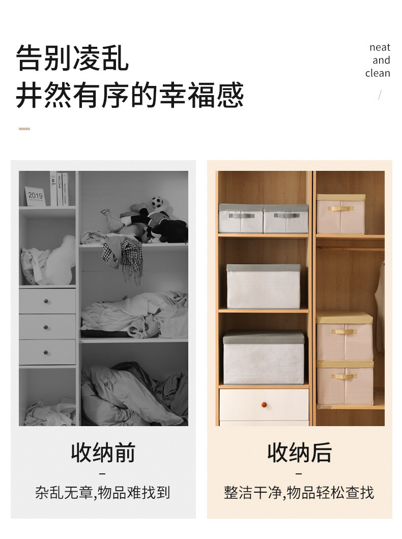 새로운 옷 보관함 뚜껑이 있는 정리함 가정용 생활용품 접이식 옷장 정리 의류 보관함스토어 가기