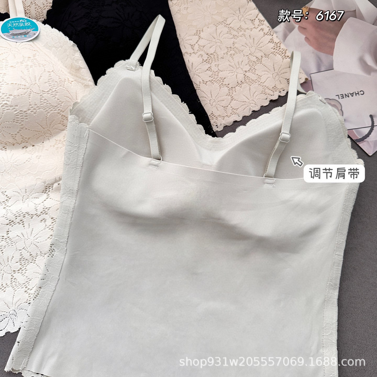 행거 6167 라텍스 고정 컵 레이스 원활한 중간 길이 조끼 V-목 조절 슬링 올 매치 여성 속옷스토어 가기