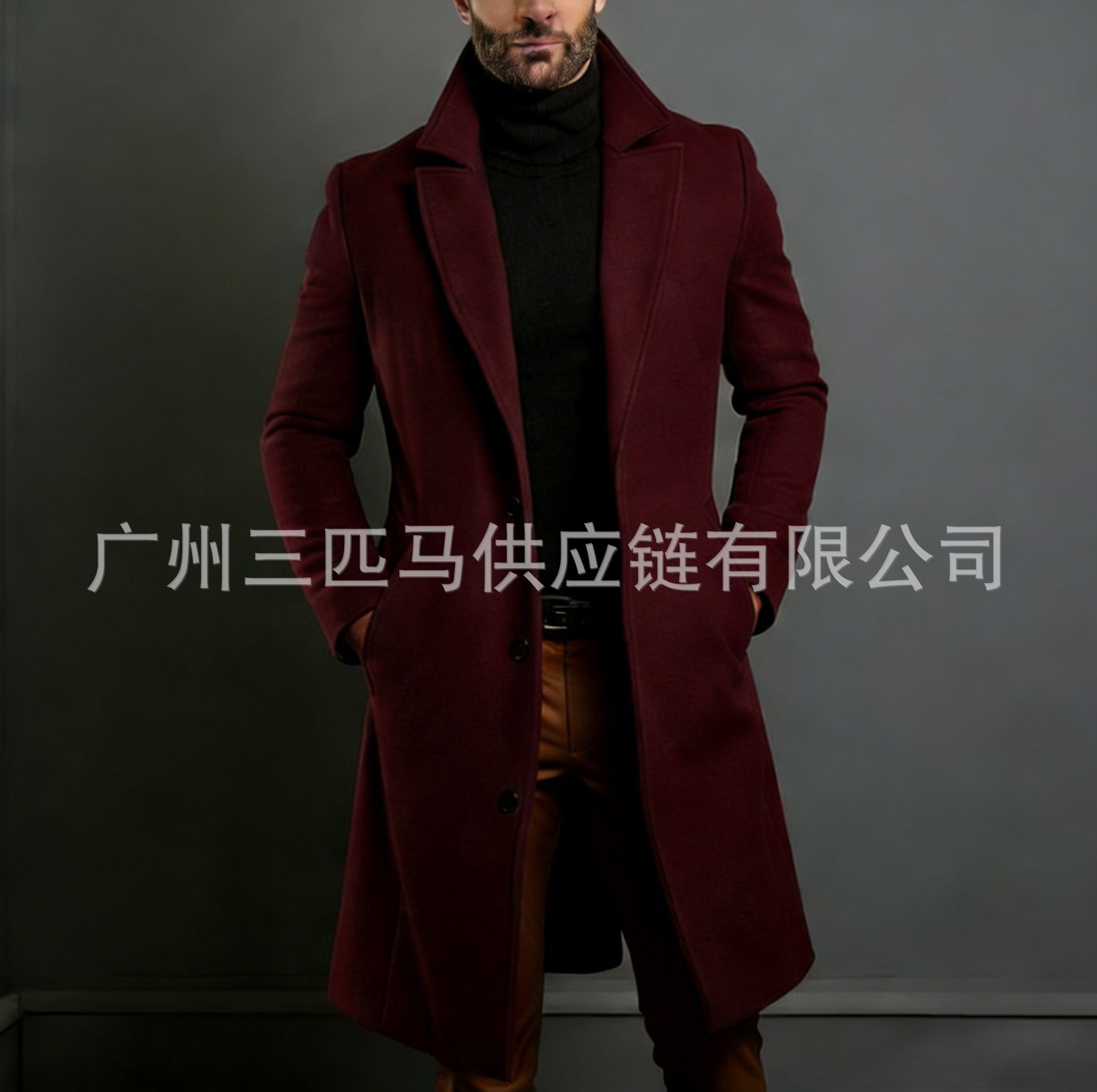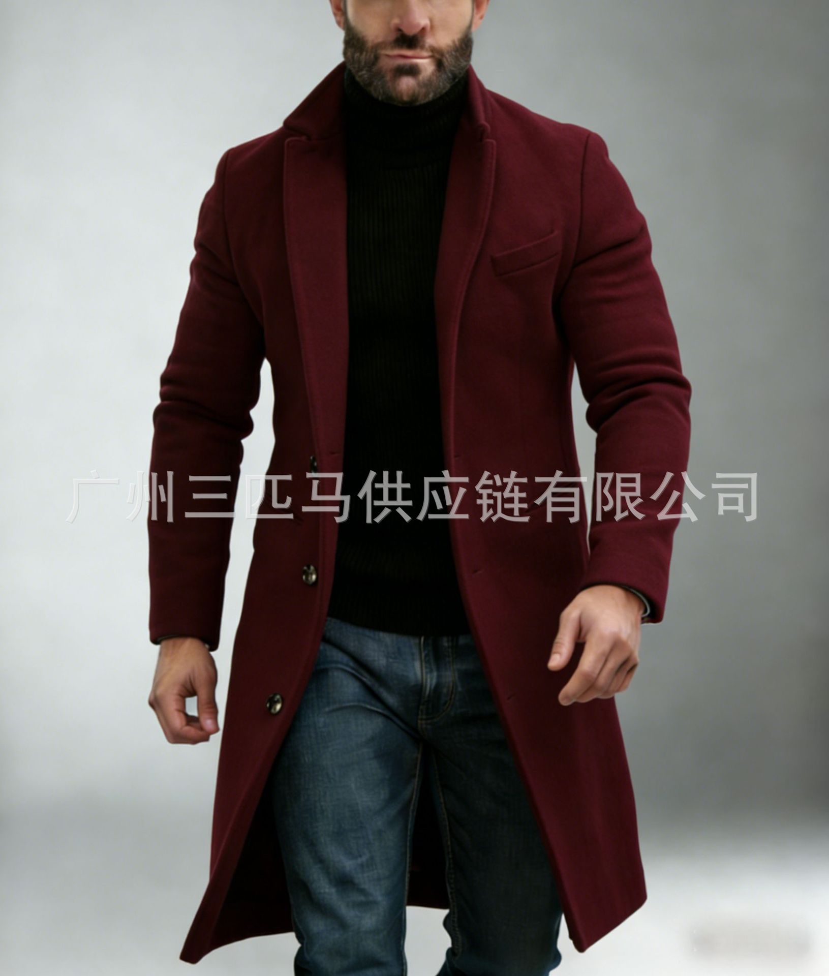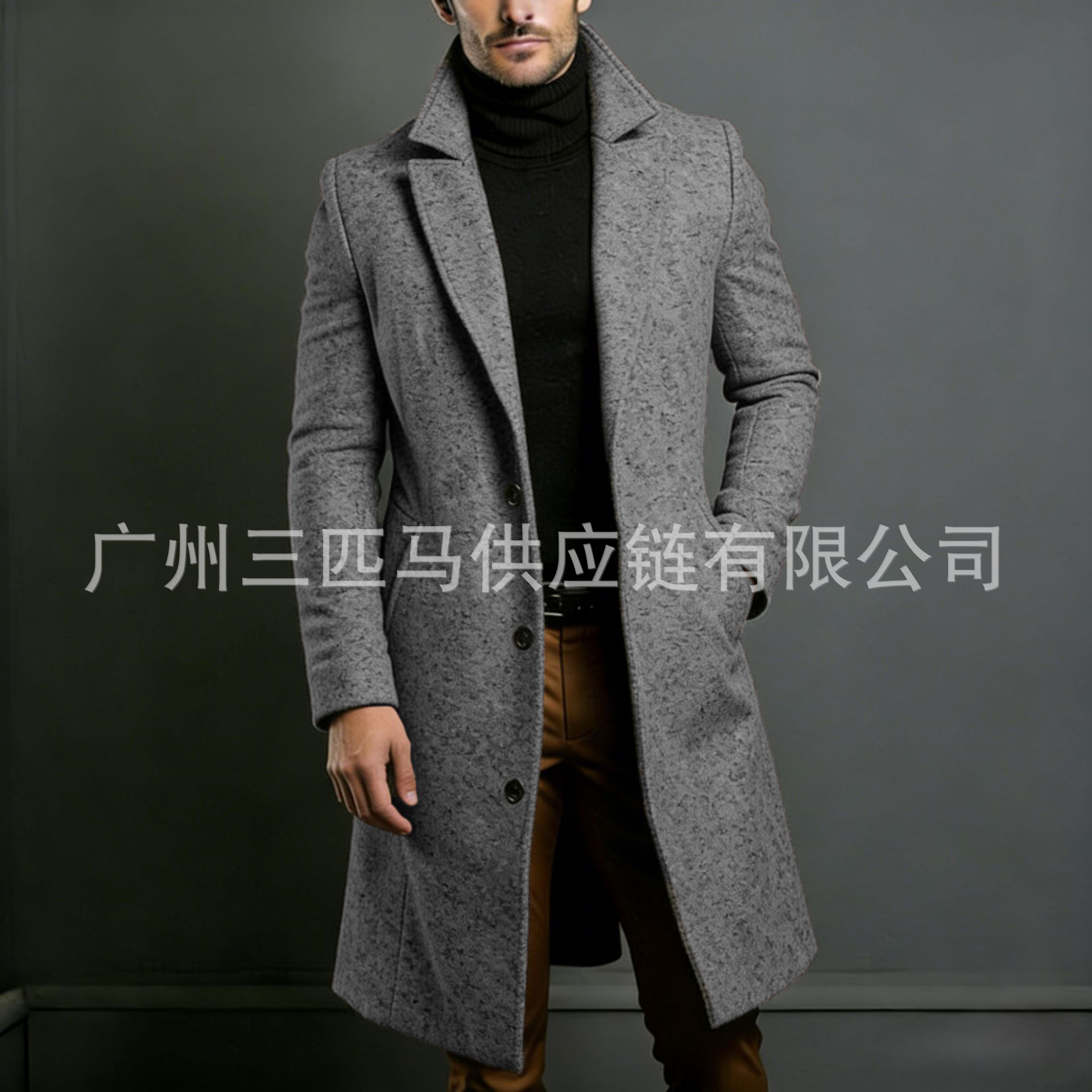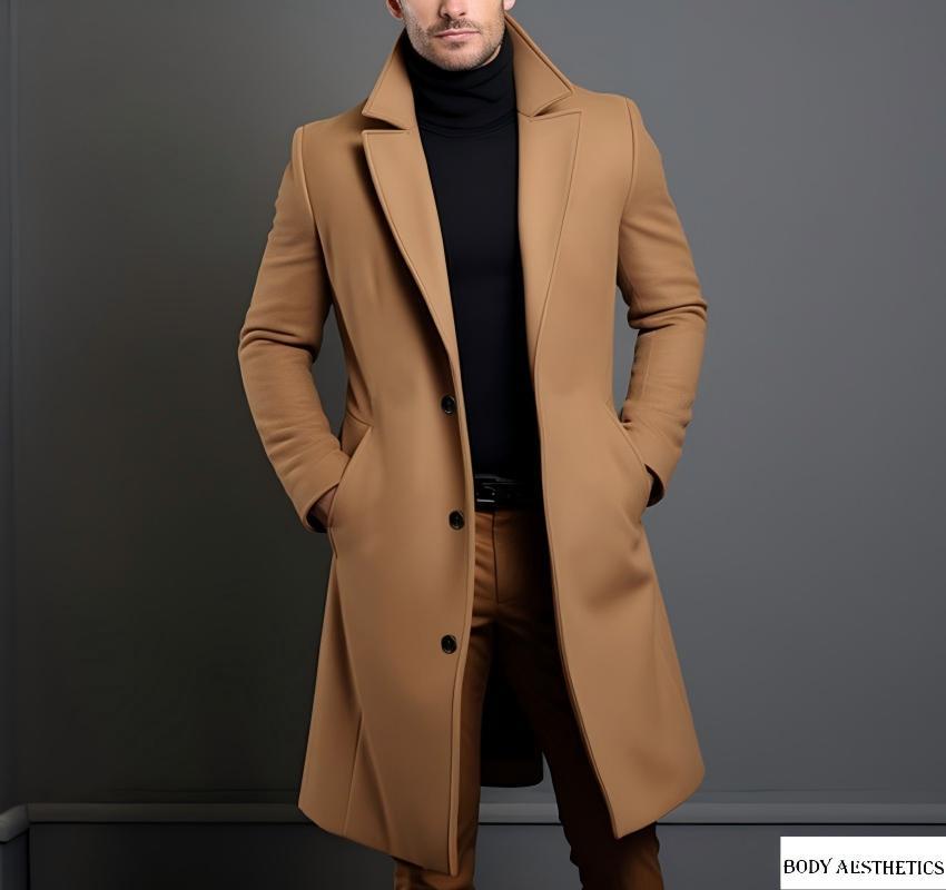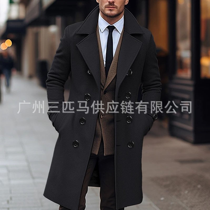 [다양한 색상 및 사이즈] 남성용 신상 모직 코트, 중간 길이의 모직 트렌치 코트, 재고 있음