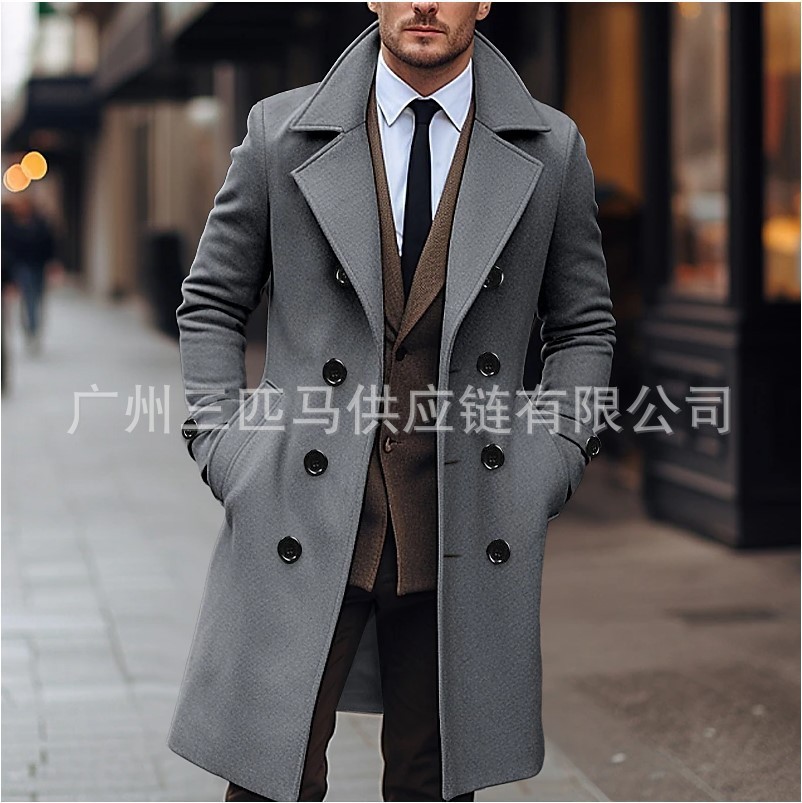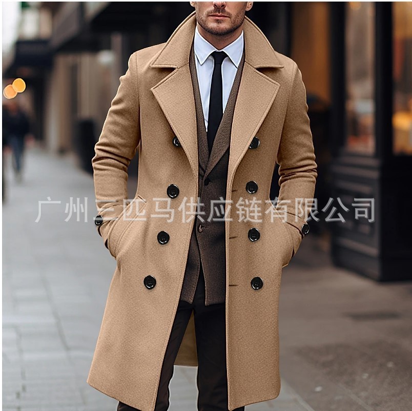 [다양한 색상 및 사이즈] 남성용 신상 모직 코트, 중간 길이의 모직 트렌치 코트, 재고 있음스토어 가기
