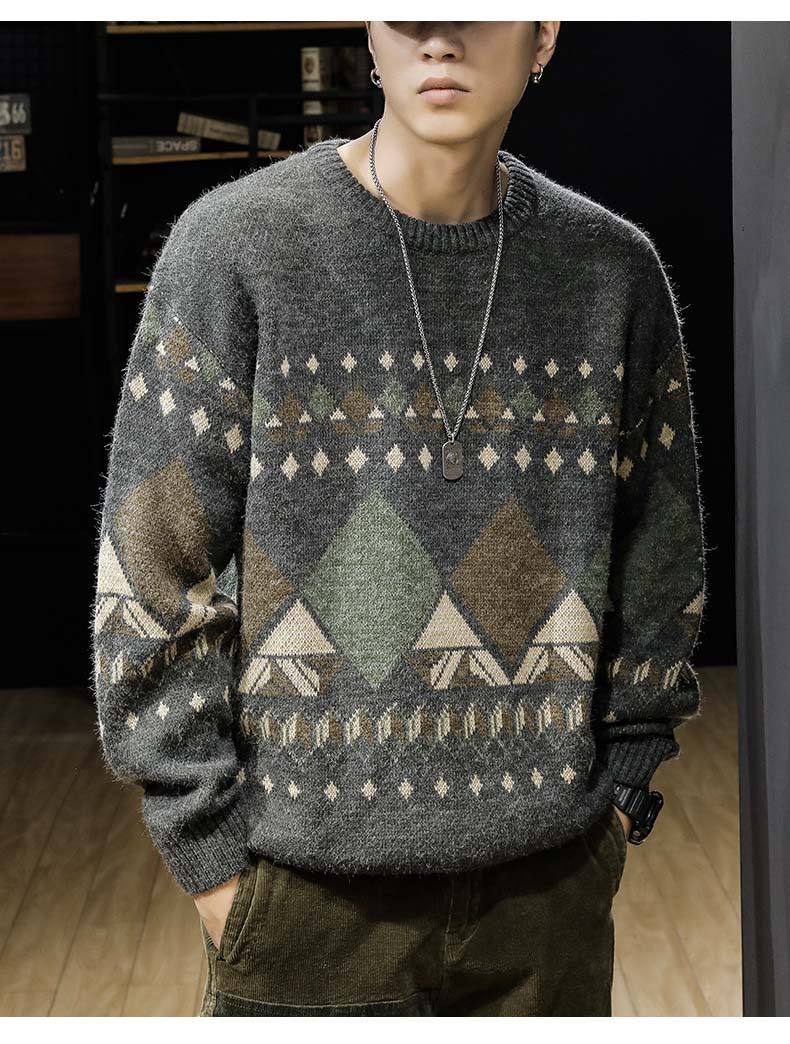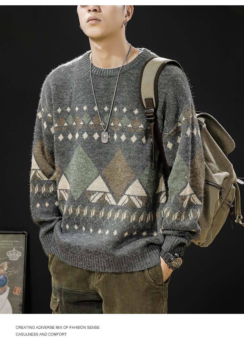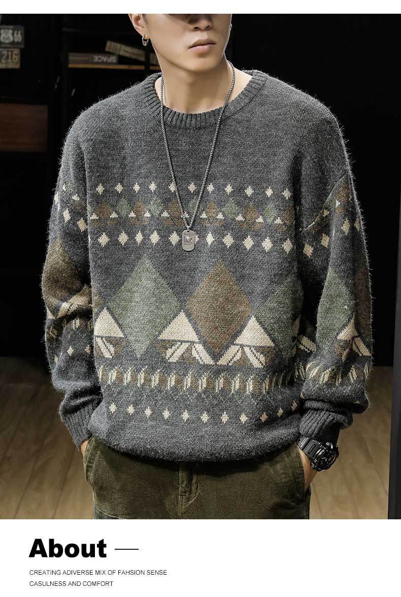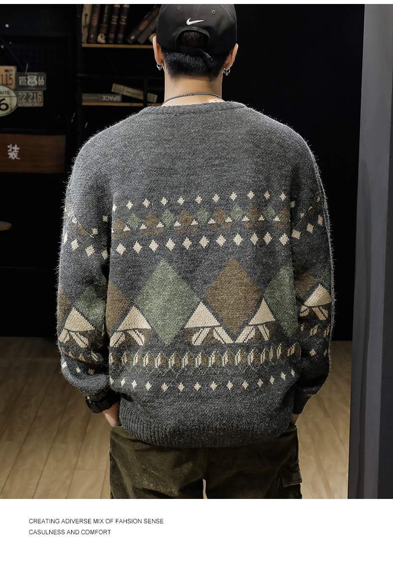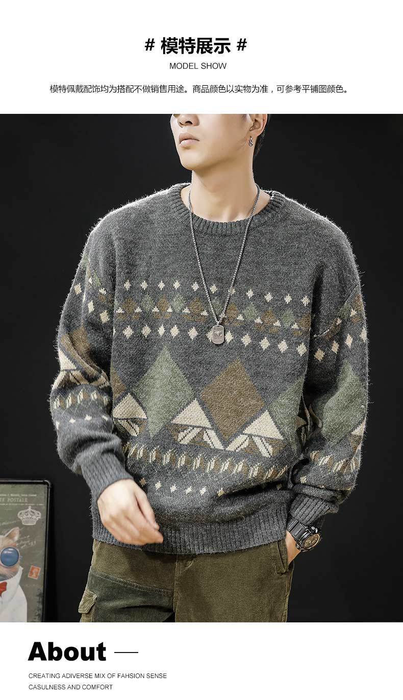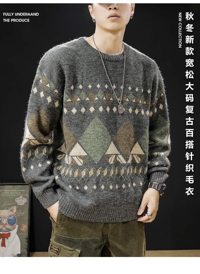 겨울 자카드 브러시 프레피 스타일 두꺼운 라운드 넥 스웨터 남성용 느슨한 플러스 사이즈 플러스 사이즈 스웨터 트렌디 한 스웨터스토어 가기