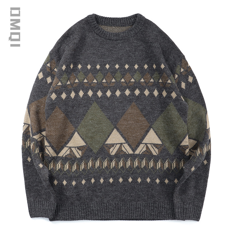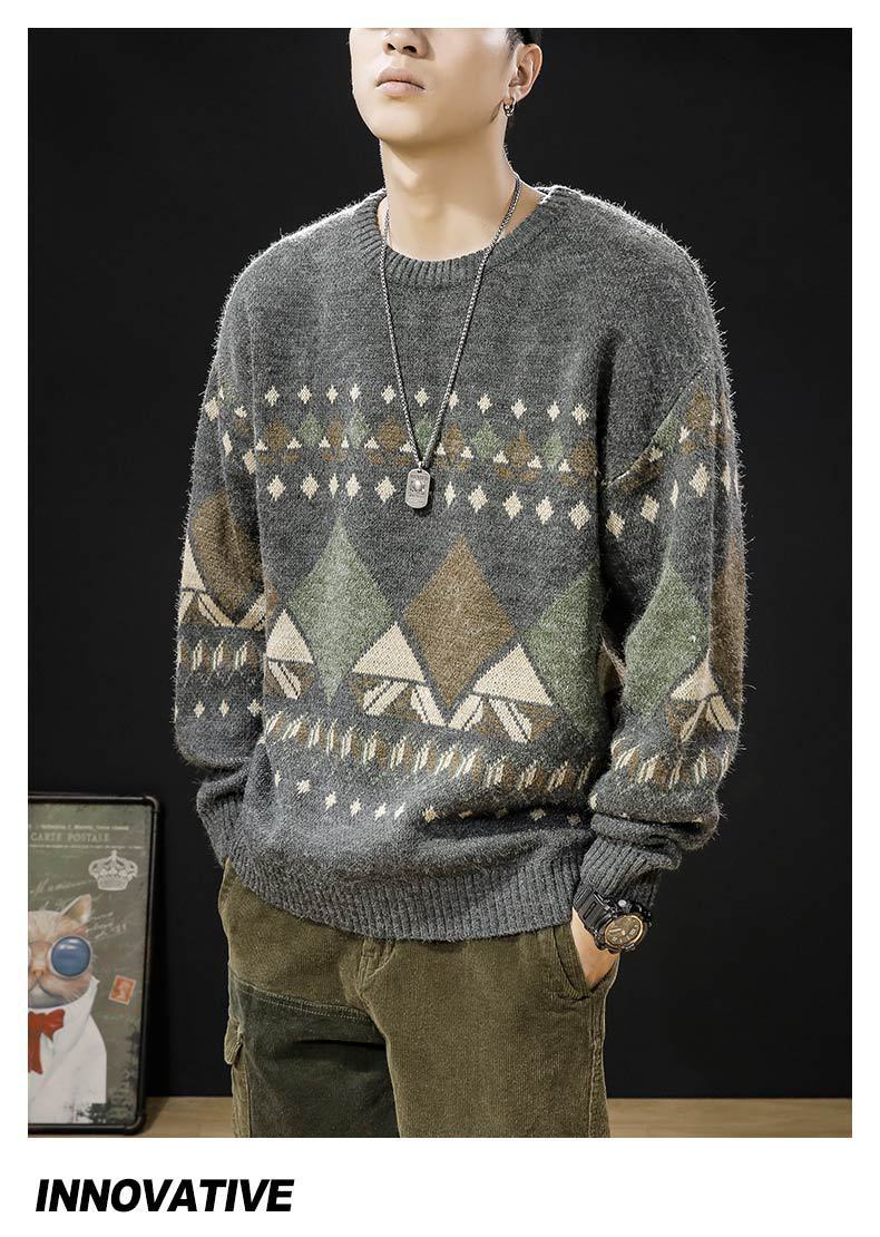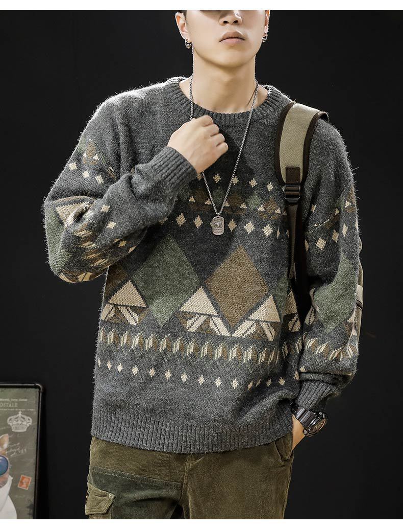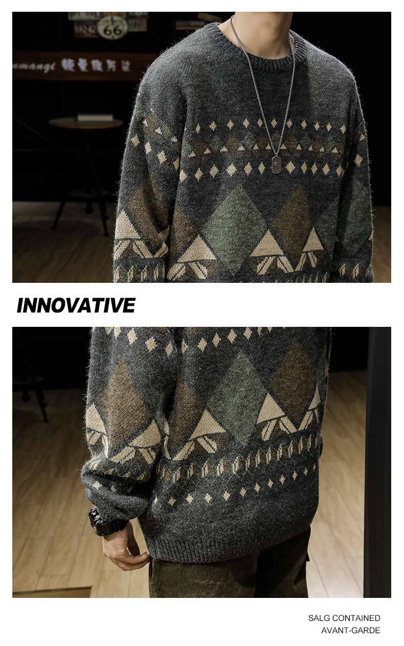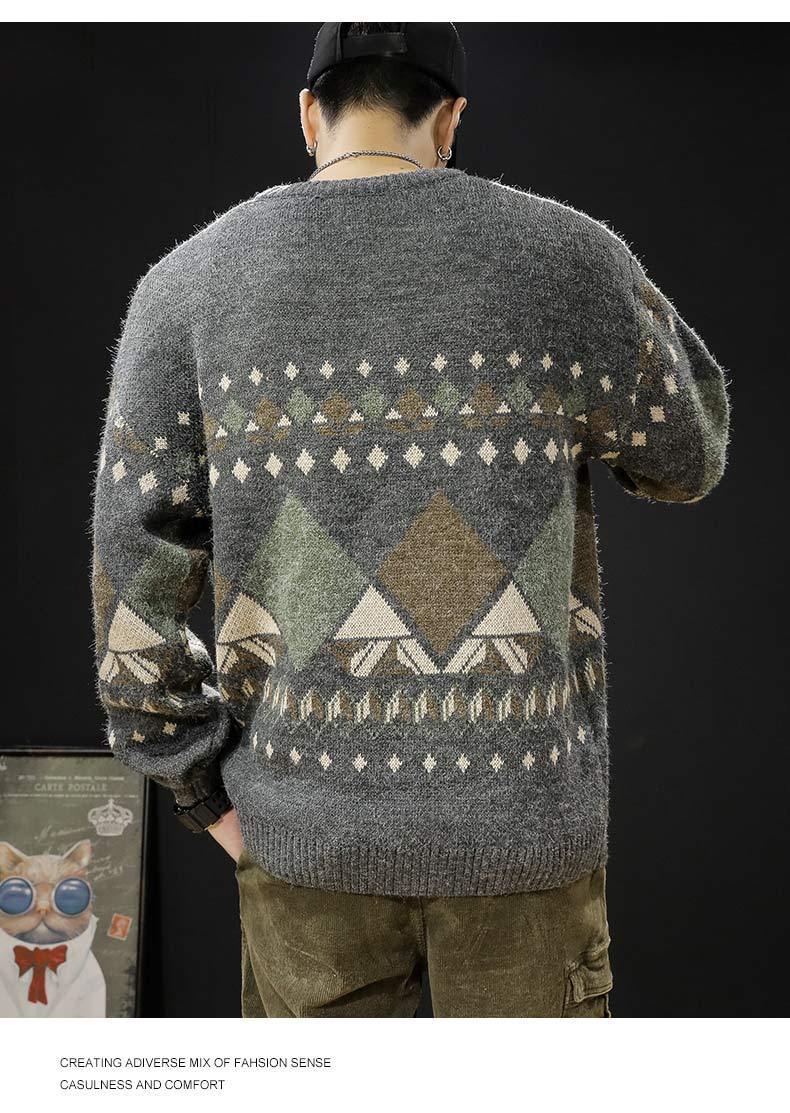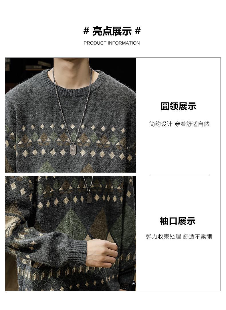 겨울 자카드 브러시 프레피 스타일 두꺼운 라운드 넥 스웨터 남성용 느슨한 플러스 사이즈 플러스 사이즈 스웨터 트렌디 한 스웨터스토어 가기