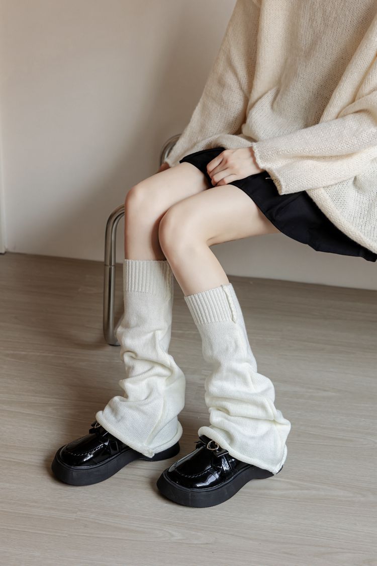가을과 겨울 새로운 니트 올 매치 따뜻한 양말 더미 양말 단색 종아리 양말 y2g 뜨거운 소녀 다리 덮개 발스토어 가기