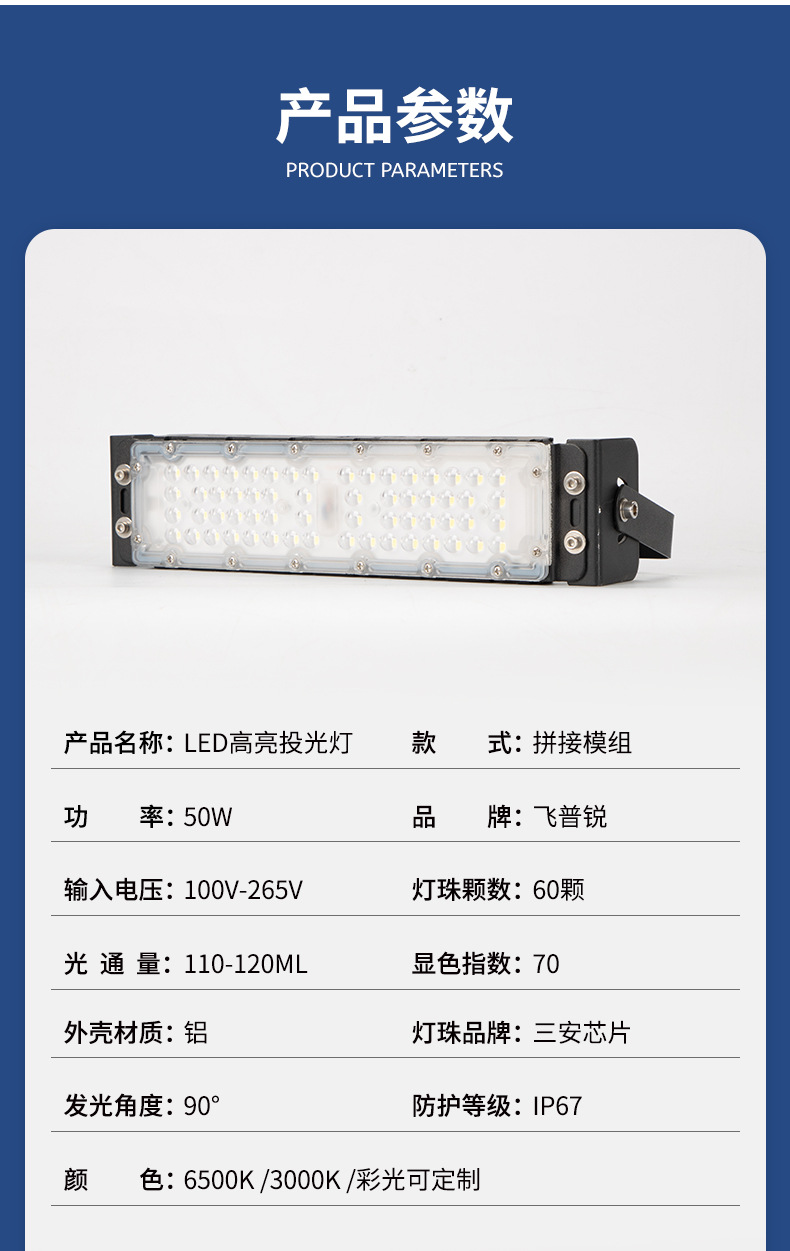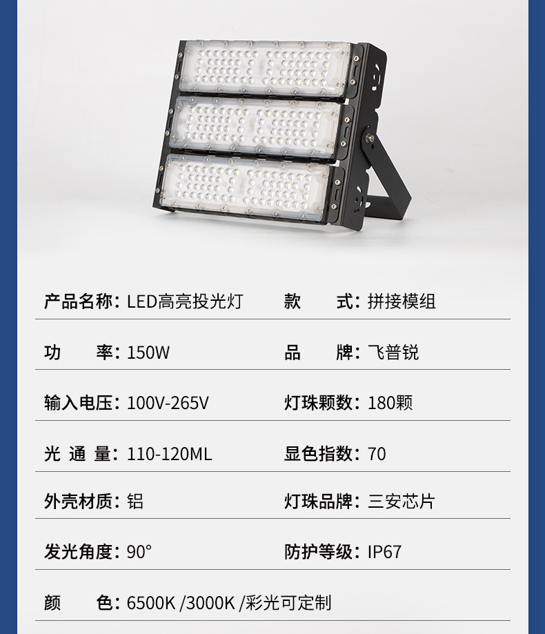 고성능 야외 투광 조명 터널 모듈 스포트라이트 야외 방수 led 투광 조명 안뜰 경기장 조명스토어 가기
