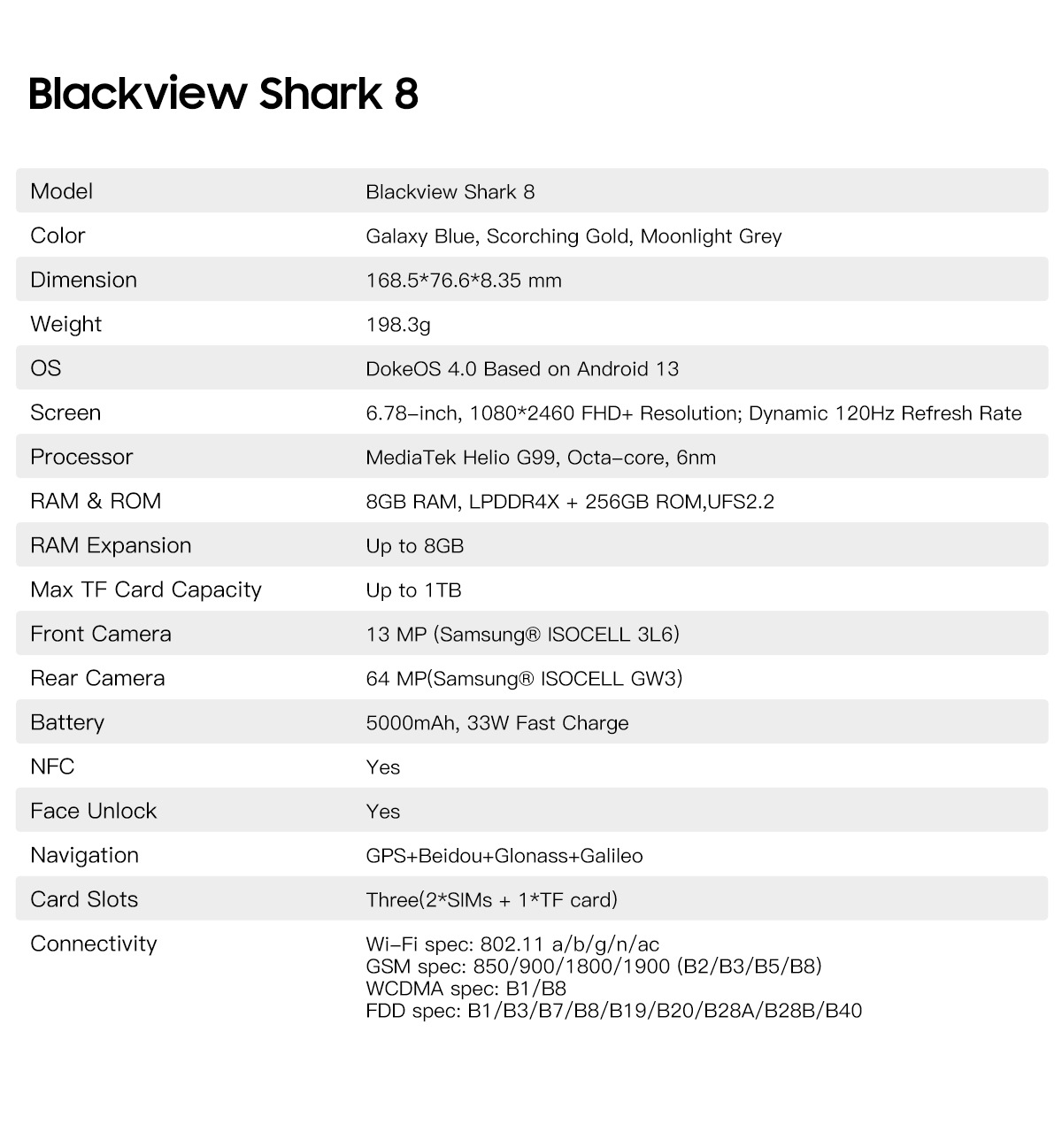 Blackview SHARK 8 8 128/256G 6.78 "4850mAh 4G 휴대 전화 홍콩에서 배송스토어 가기