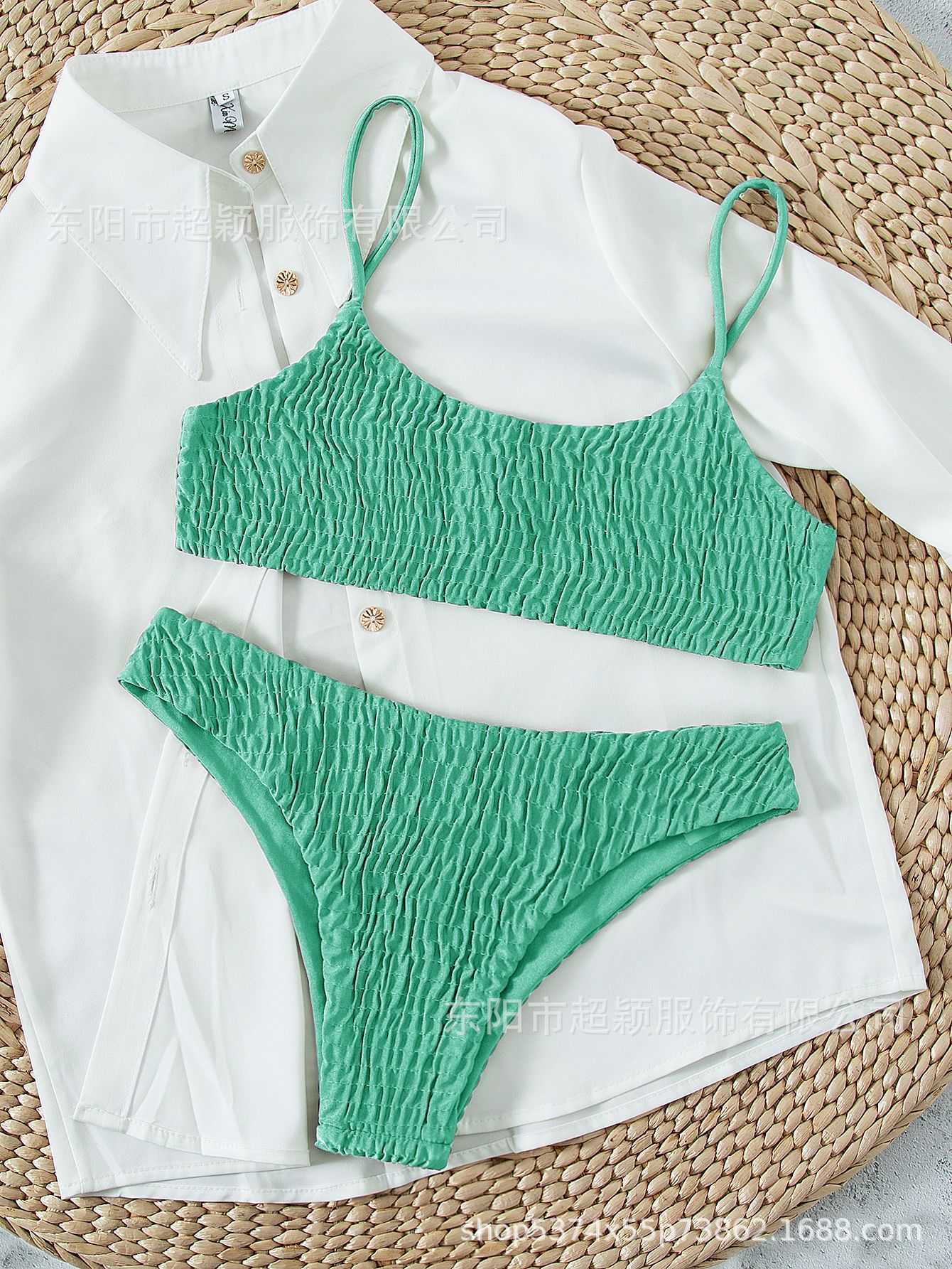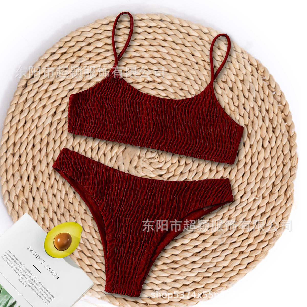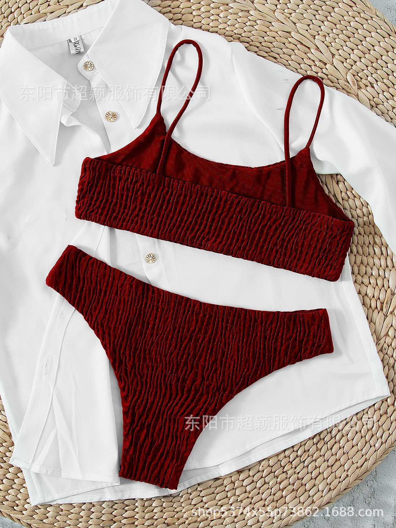 스플릿 비키니 2023 유럽 및 미국 AliExpress 핫 수영복 섹시한 플리츠 소고기 텐든 수영복 비키니스토어 가기