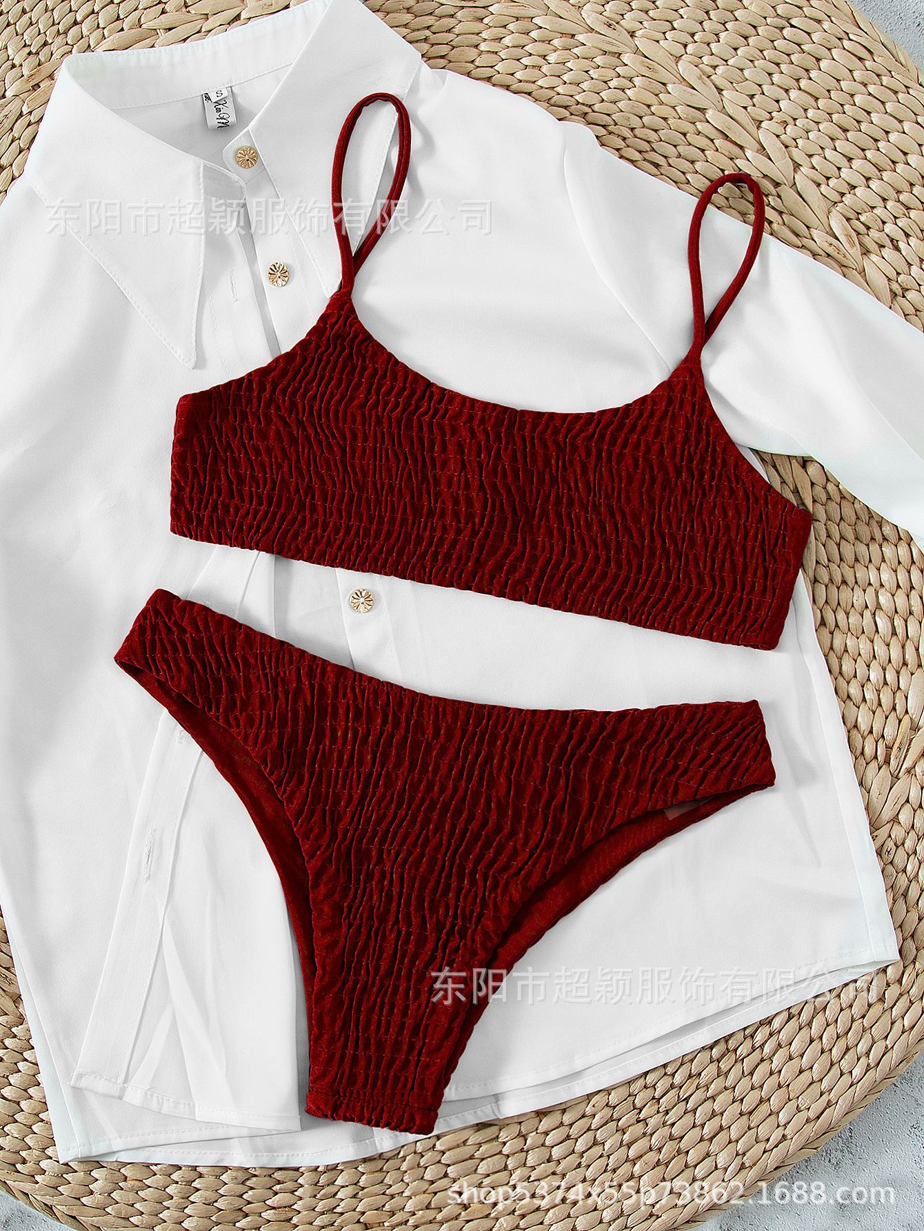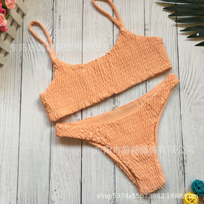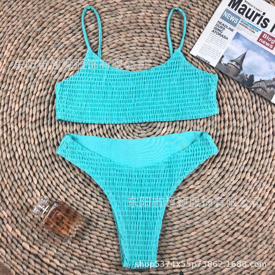 스플릿 비키니 2023 유럽 및 미국 AliExpress 핫 수영복 섹시한 플리츠 소고기 텐든 수영복 비키니