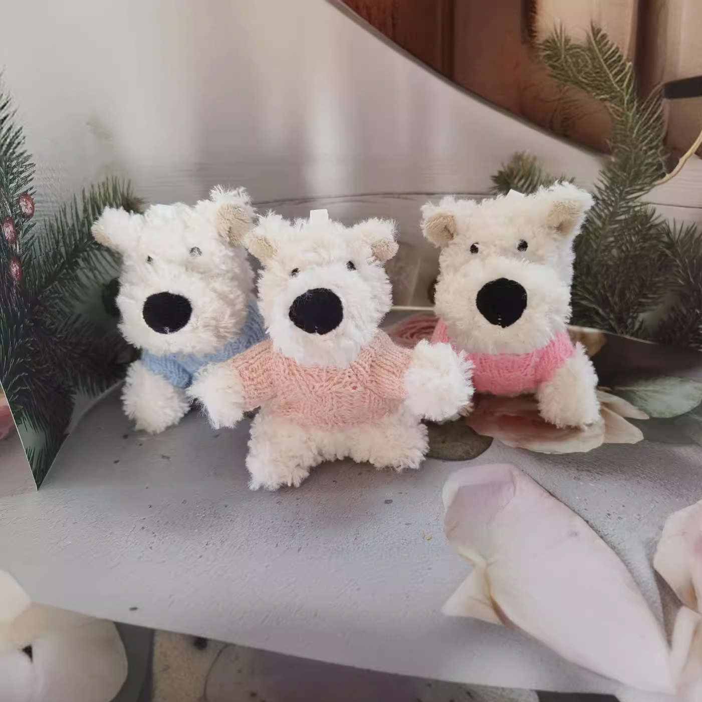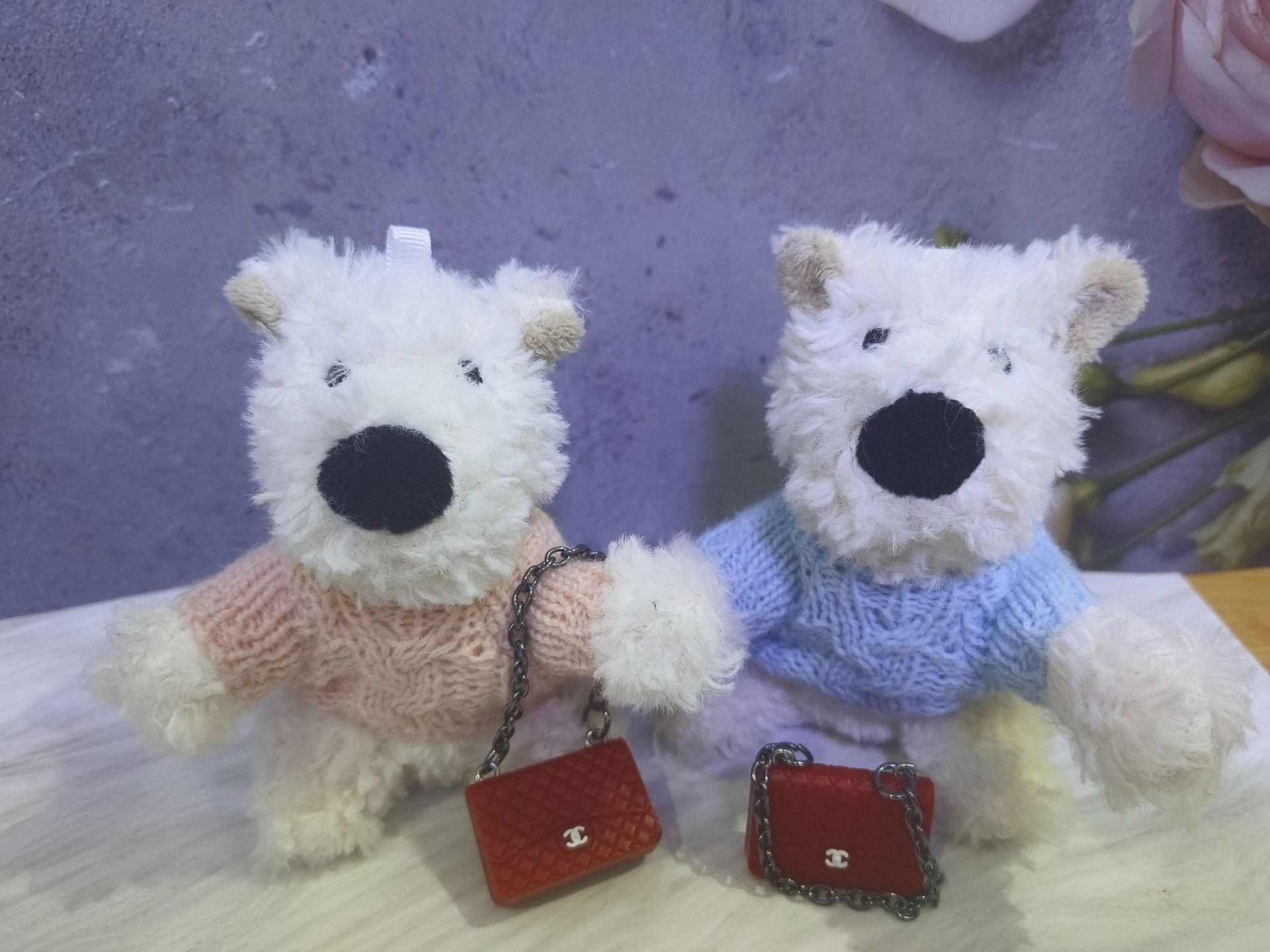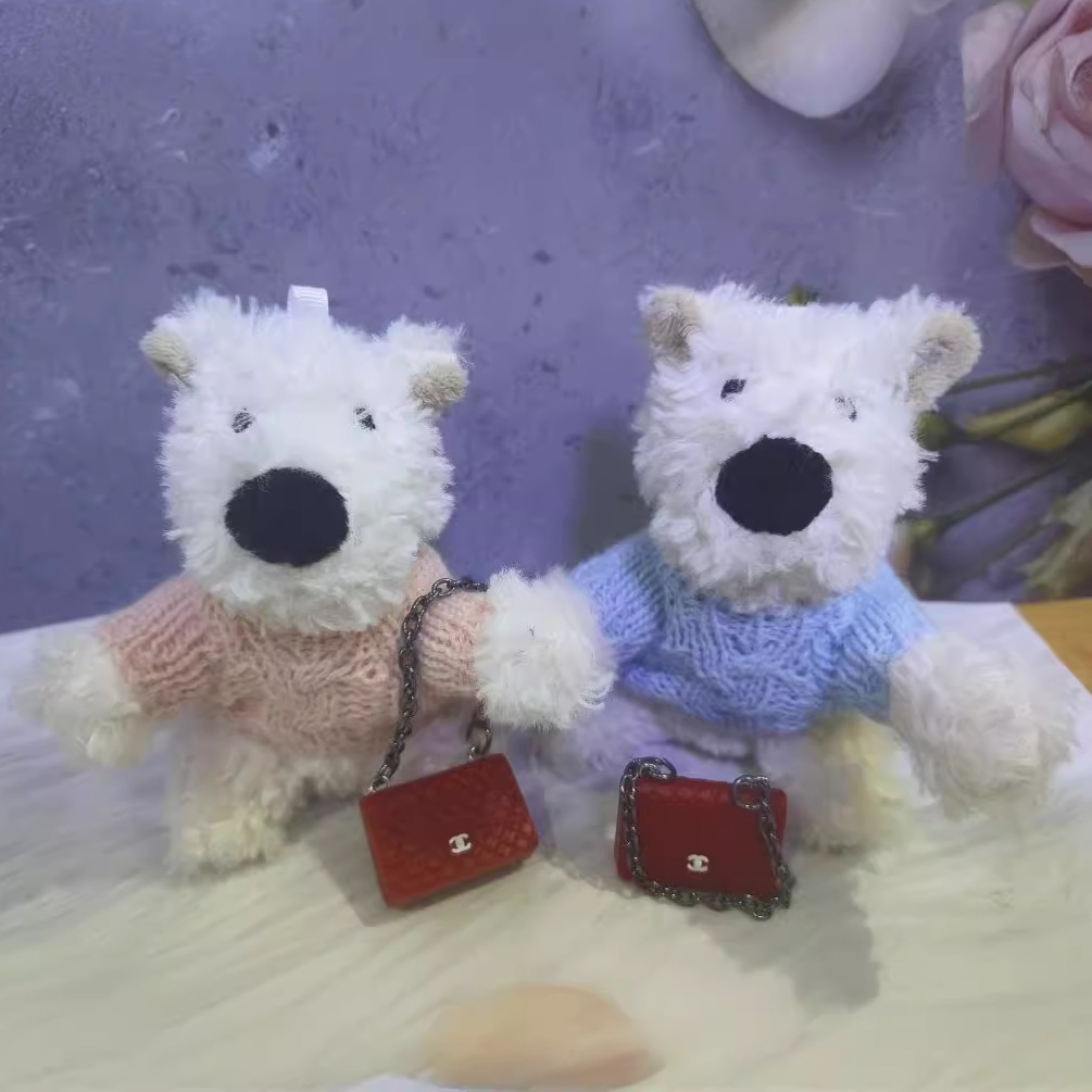 귀여운 웨스트 하이랜드 펜던트 화이트 줄기 개 가방 펜던트 봉제 장난감 10cm 강아지 미니 인형 수리 개 인형스토어 가기