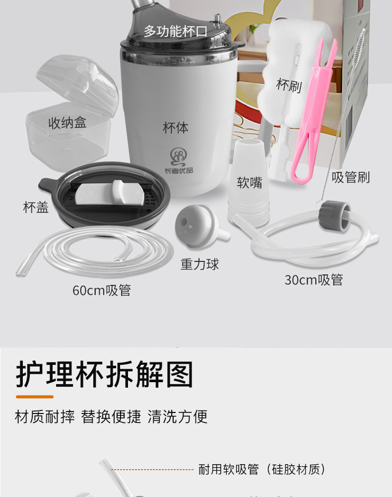 노인 안티 초크 간호 컵 누워 식수 침대 환자 누출 방지 중력 볼 진공 컵 성인 흐름 음식 밀짚 컵스토어 가기