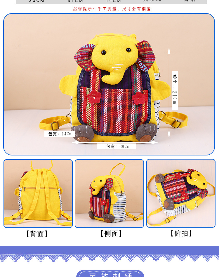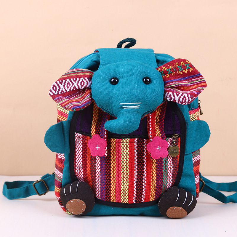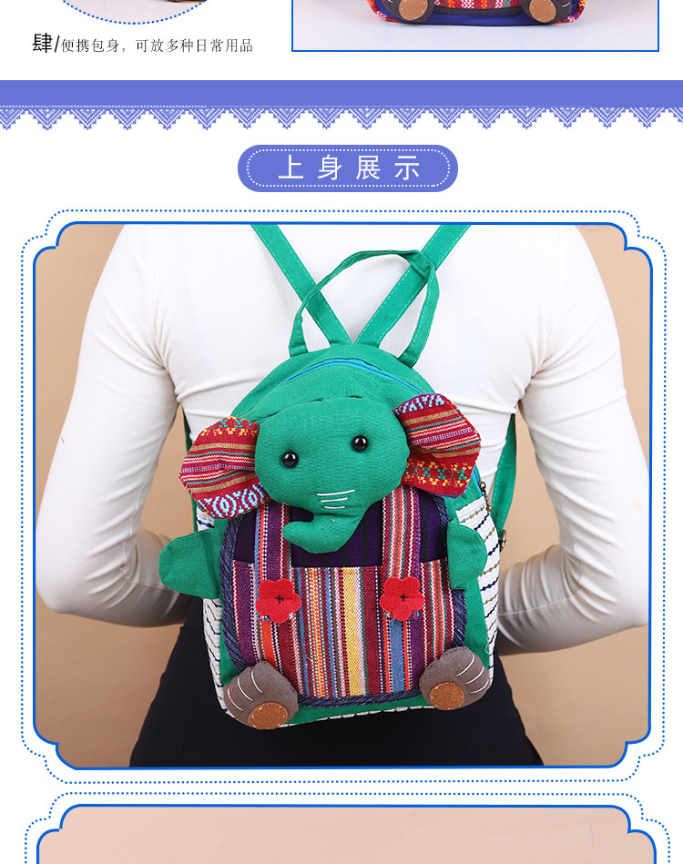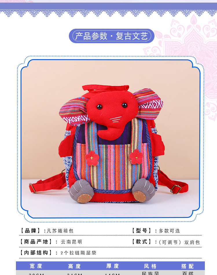 민족 스타일 직물 윈난 배낭 캐주얼 다재다능한 어린이 코끼리 메신저 가방 창조적 인 귀여운 만화 작은 가방