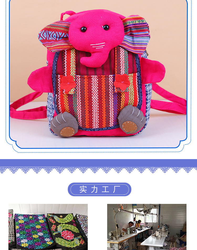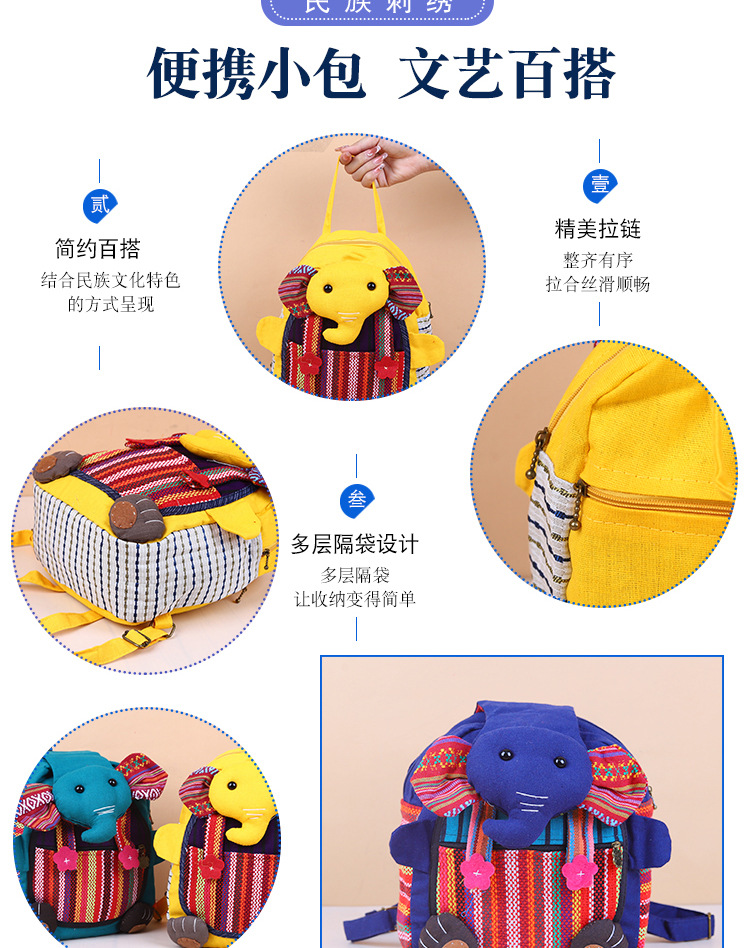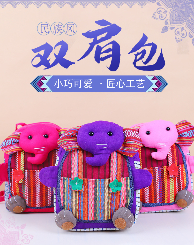 민족 스타일 직물 윈난 배낭 캐주얼 다재다능한 어린이 코끼리 메신저 가방 창조적 인 귀여운 만화 작은 가방스토어 가기