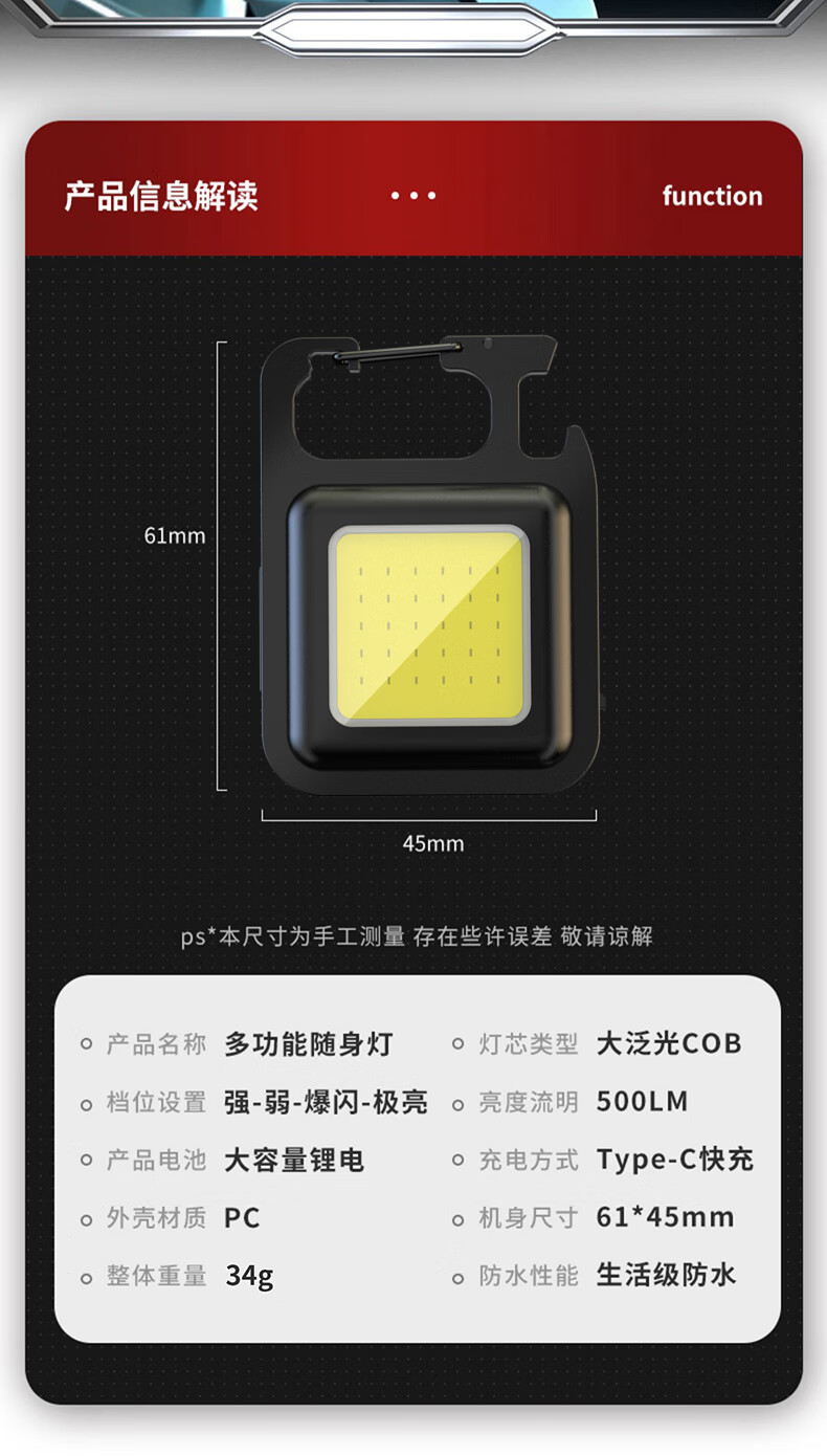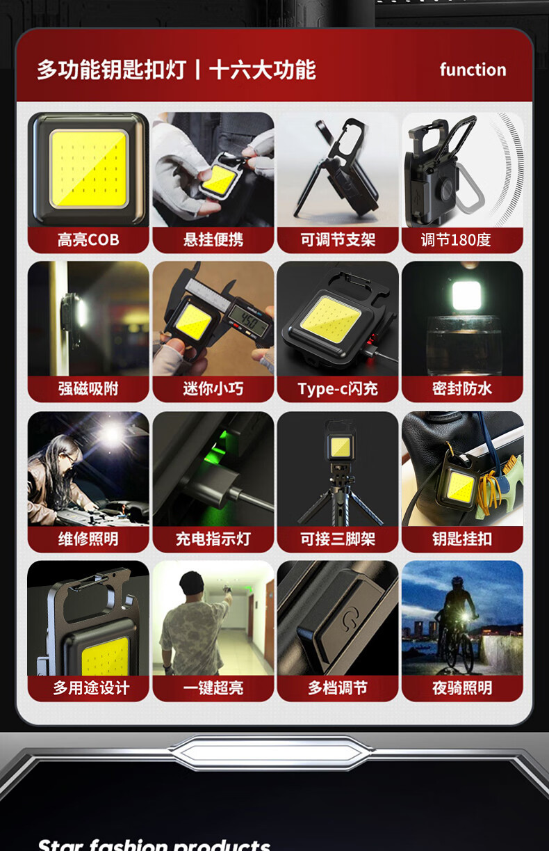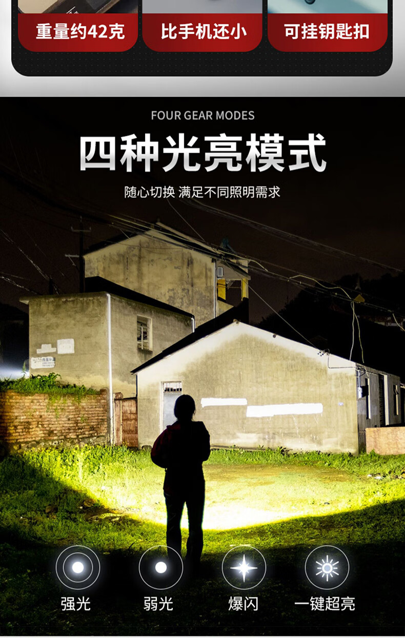 키 체인 빛 강한 가벼운 충전식 손전등 슈퍼 밝은 야외 다기능 휴대용 미니 작업 빛 작은 휴대용 led