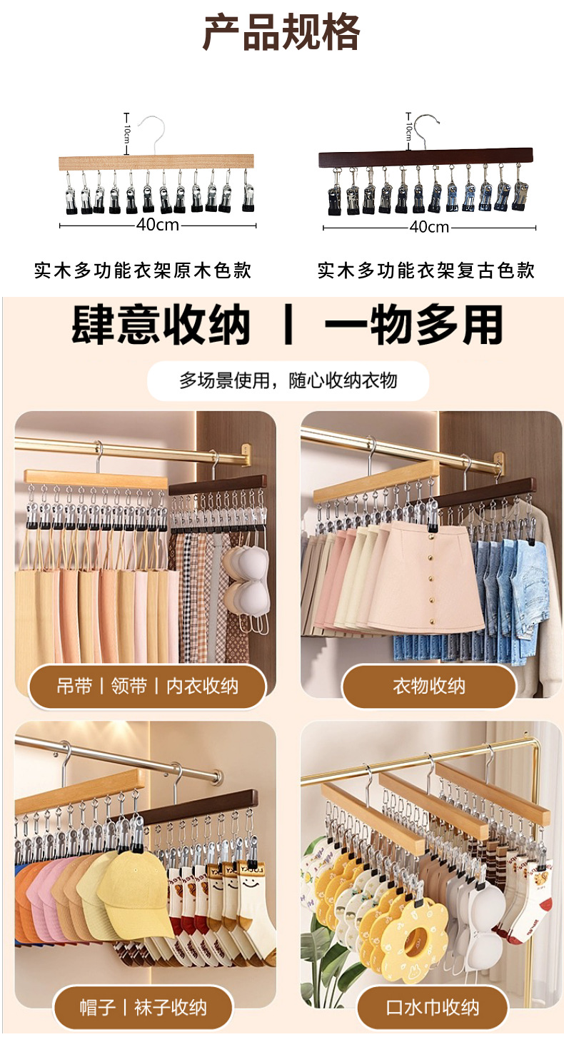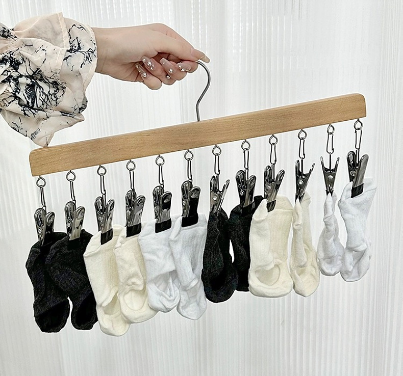 Ruilin 단단한 나무 다기능 12 클립 옷걸이 양말 클립 바지 클립 원활한 저장 디스플레이 단일 라인 공장 도매스토어 가기