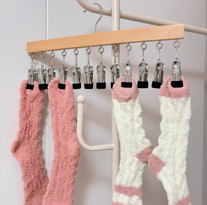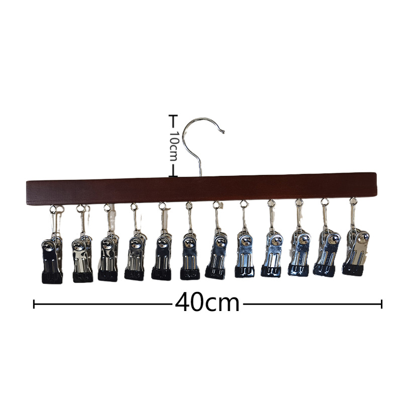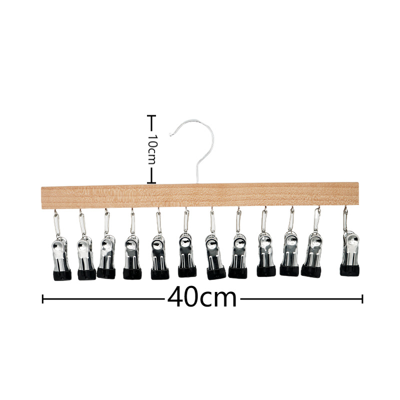 Ruilin 단단한 나무 다기능 12 클립 옷걸이 양말 클립 바지 클립 원활한 저장 디스플레이 단일 라인 공장 도매