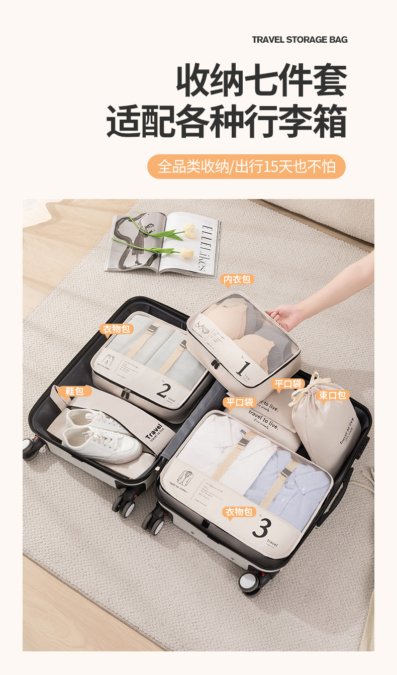 여행 보관 가방 세븐 피스 세트 여행 의류 서브 팩 가방 수하물 의류 속옷 세탁 화장품 보관 가방스토어 가기