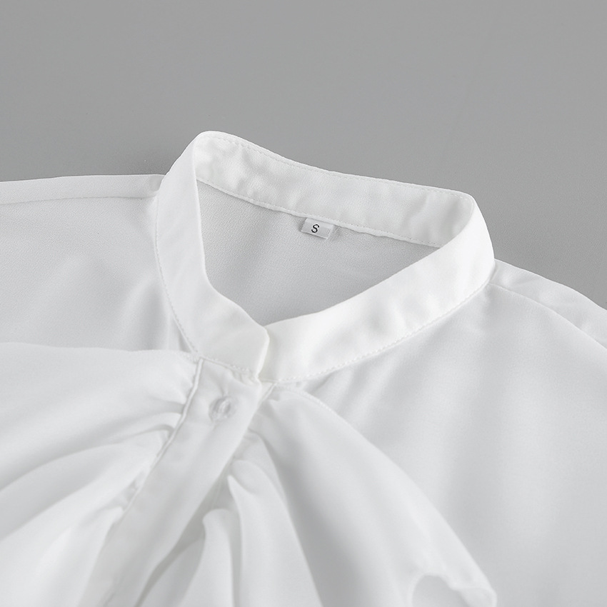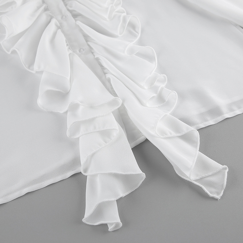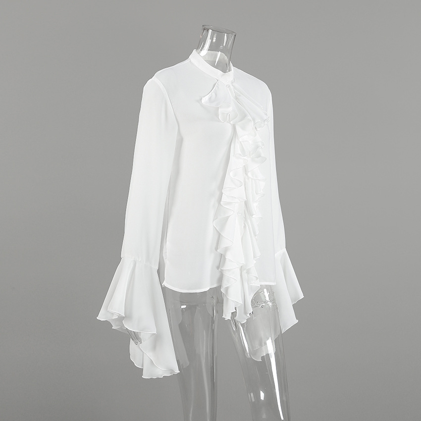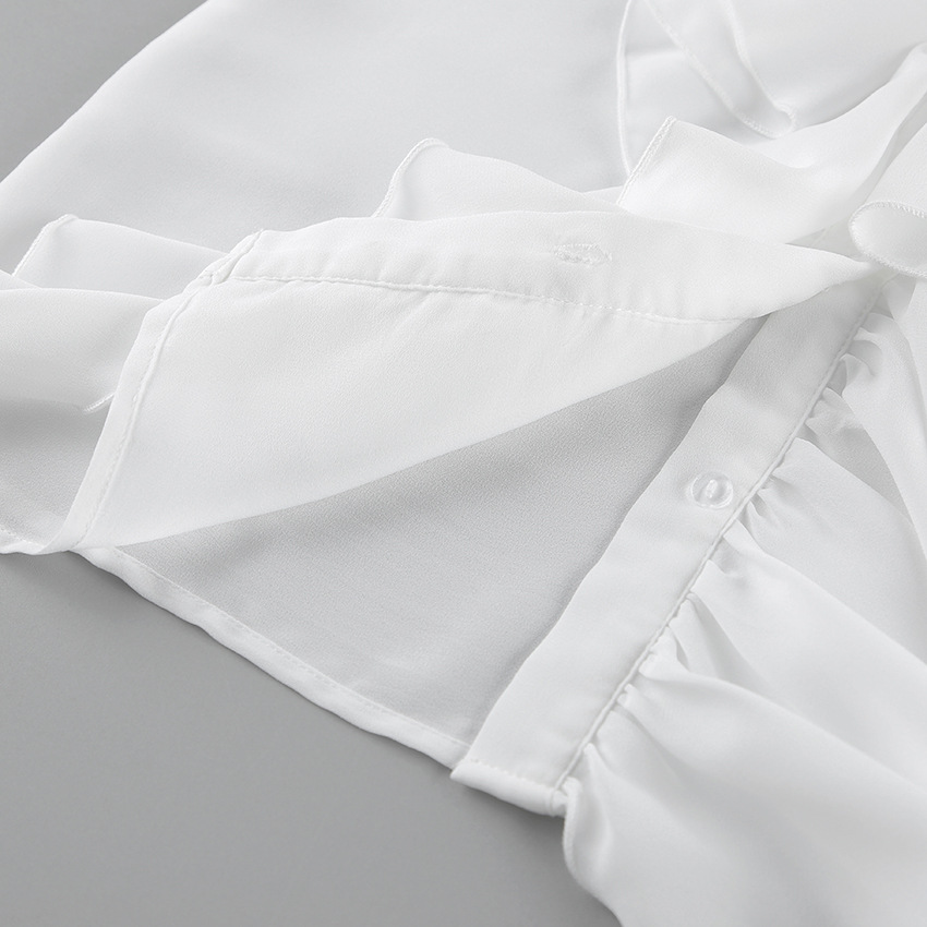 화이트 쉬폰 디자인 라운드넥 벨소매 러플 여성 셔츠 2025 유럽 및 미국 봄 여름 신상 패션 여성복