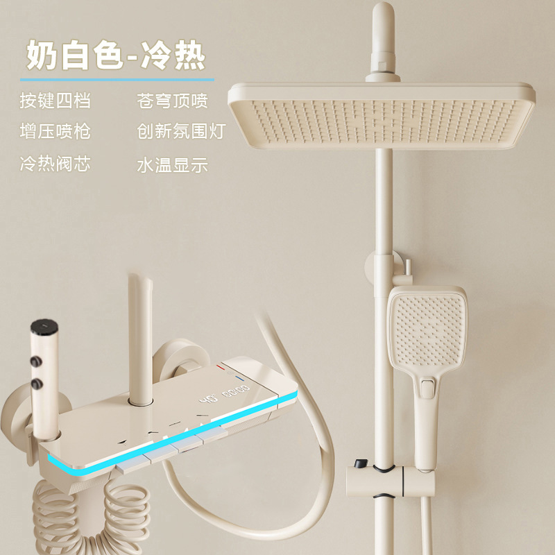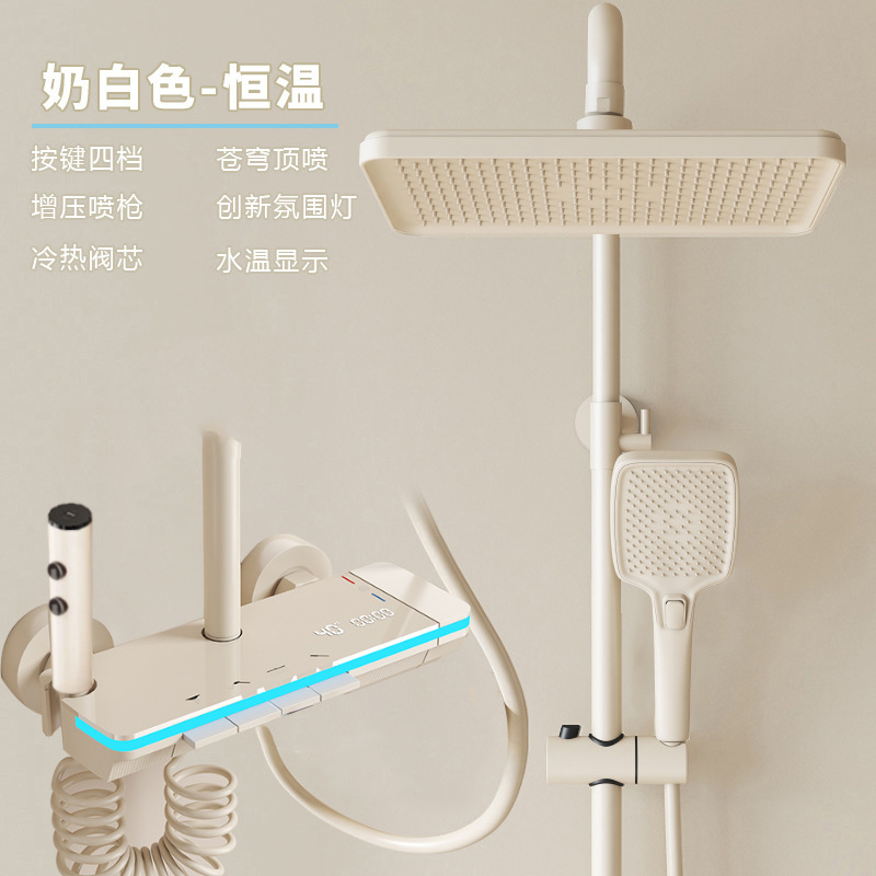 크림 스타일 화이트 일정한 온도 샤워 헤드 세트 샤워 욕실 가정용 피아노 키 레인 샤워 헤드 노즐