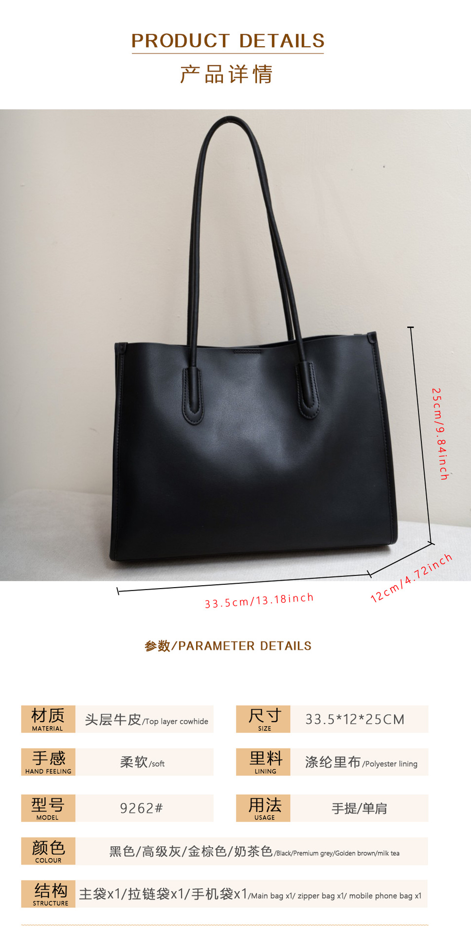 여성 가방 2024 새로운 고급 틈새 디자인 숄더백 정품 가죽 여성 가방 통근 소프트 소가죽 토트 백