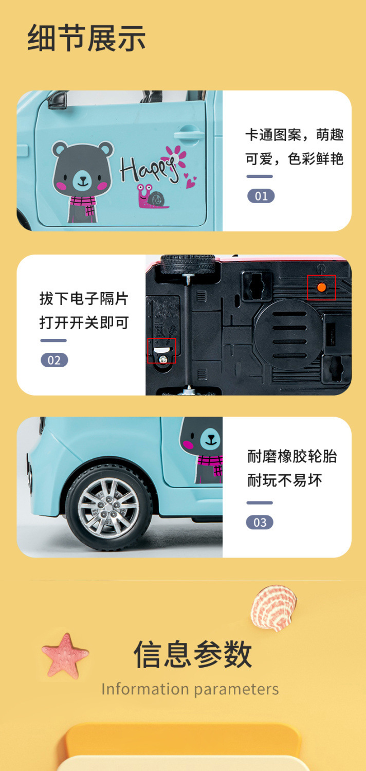 어린이 만화 미니 사운드와 가벼운 장난감 자동차는 도어 시뮬레이션 드롭 방지 자동차 아기 울 링 관성 자동차를 열 수 있습니다.스토어 가기