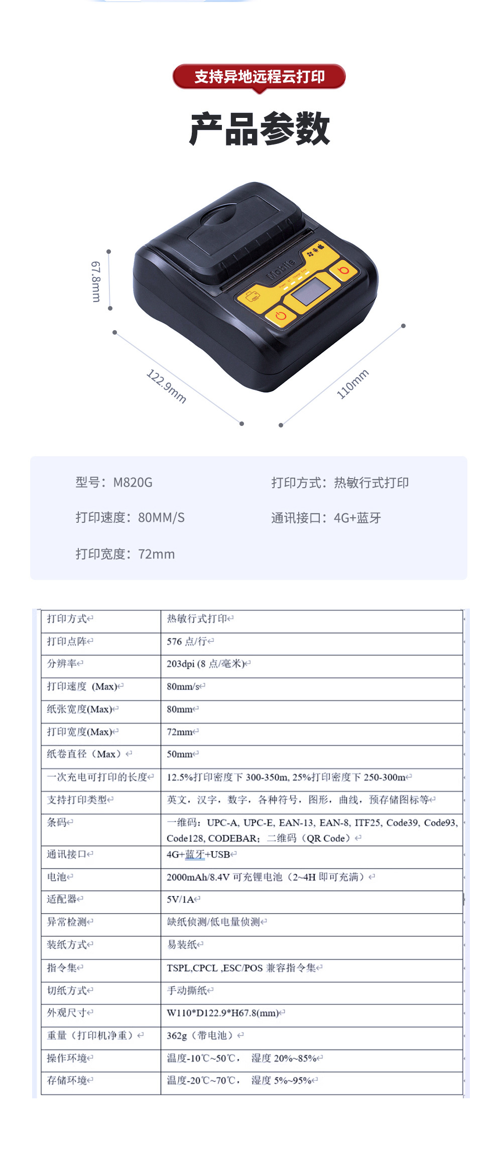 선택 Zhe M820G 바코드 라벨 프린터 휴대용 익스프레스 단일 접착제 열 라벨 기계스토어 가기