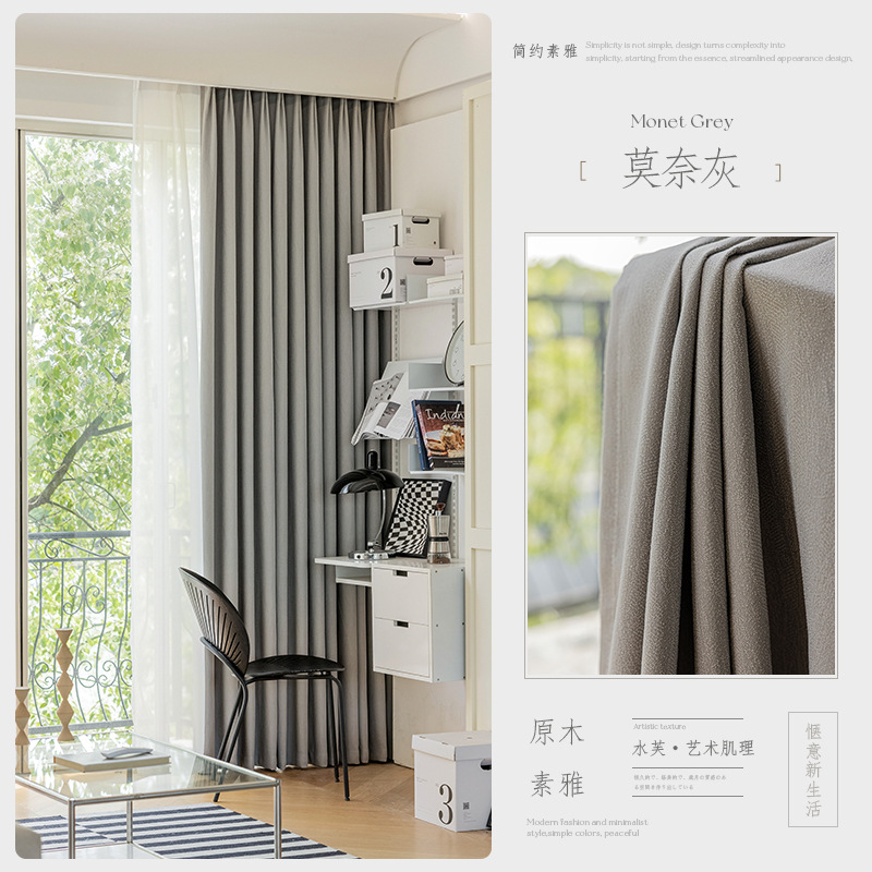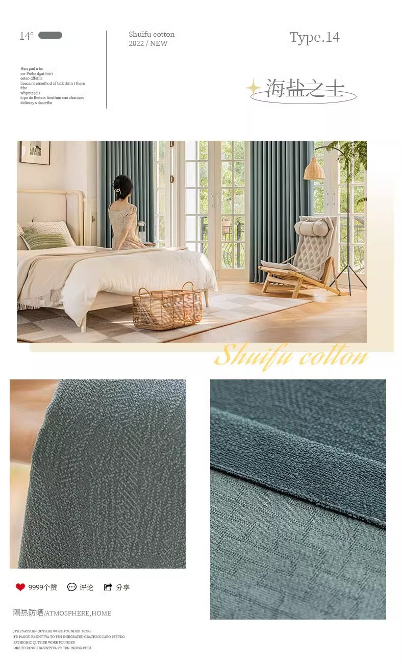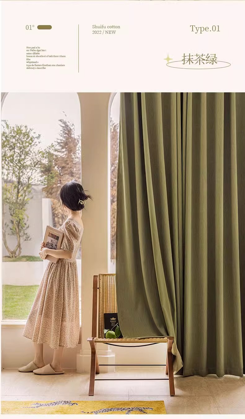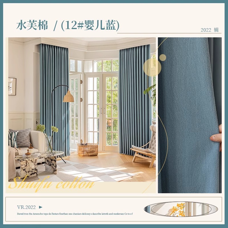 새로운 물 푸 코튼 단색 두꺼운 커튼 침실 음영 신선한 chenille 거실 발코니 하이 엔드스토어 가기