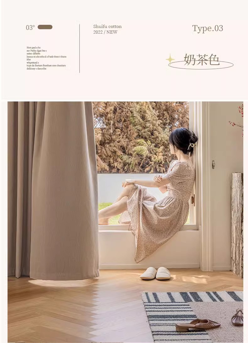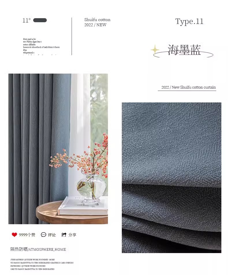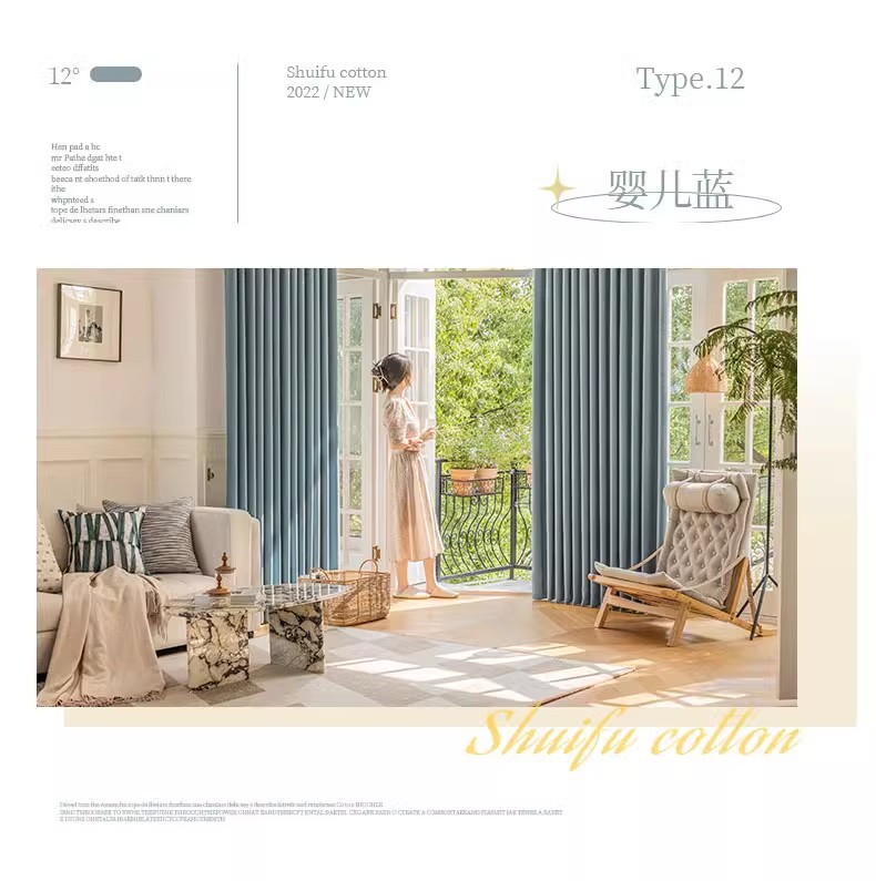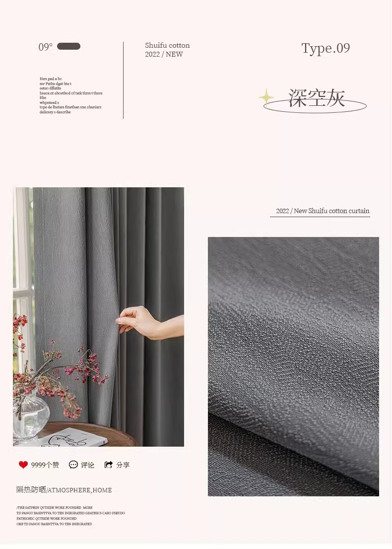 새로운 물 푸 코튼 단색 두꺼운 커튼 침실 음영 신선한 chenille 거실 발코니 하이 엔드스토어 가기