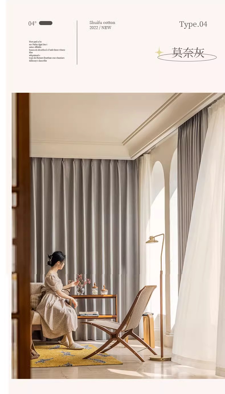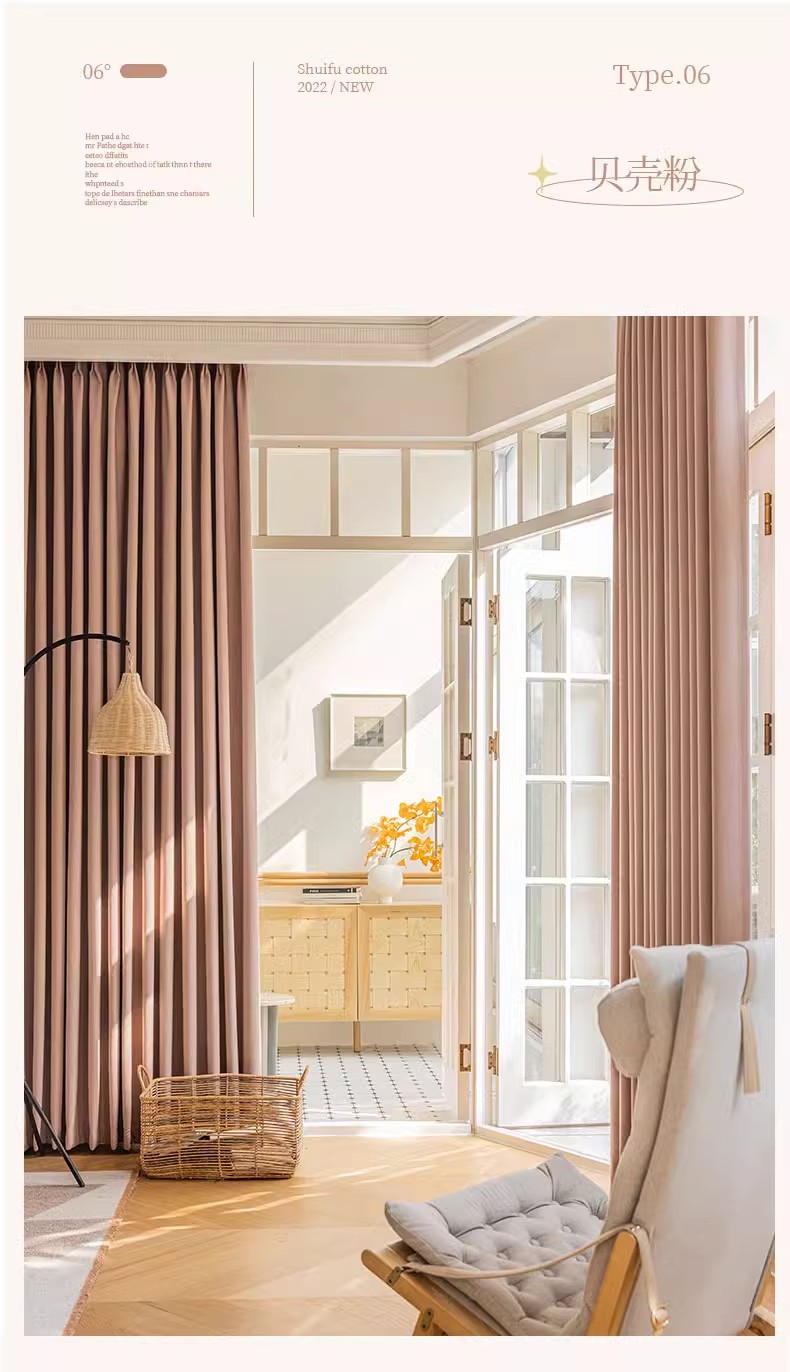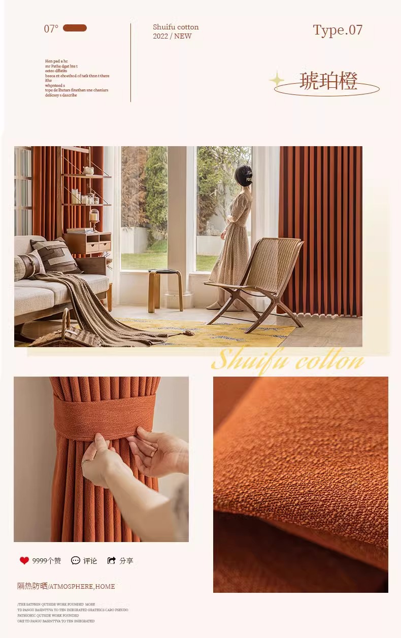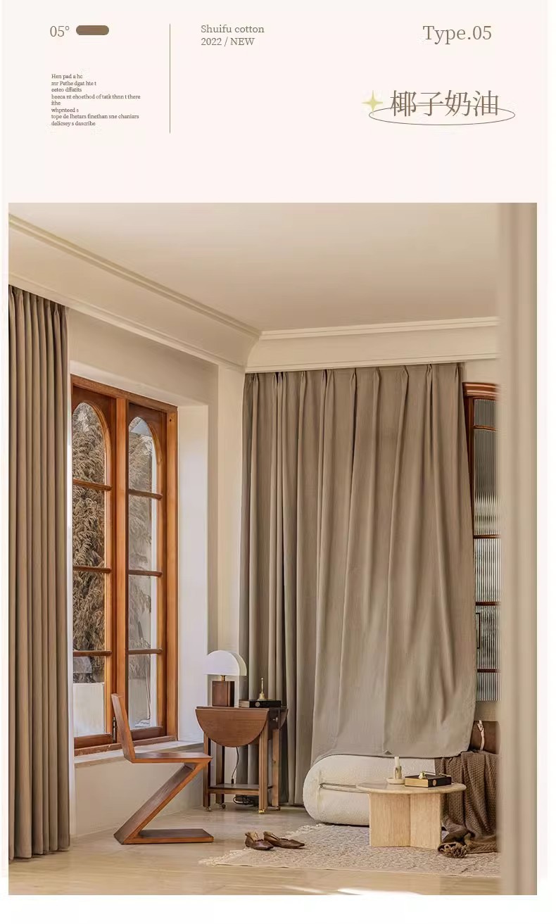 새로운 물 푸 코튼 단색 두꺼운 커튼 침실 음영 신선한 chenille 거실 발코니 하이 엔드