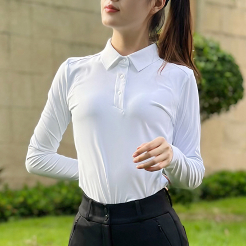 골프 여성용 라펠 긴팔 티셔츠 탑 야외 스포츠 속건성 슬림 폴로 셔츠 골프웨어 하이 엔드 맞춤형