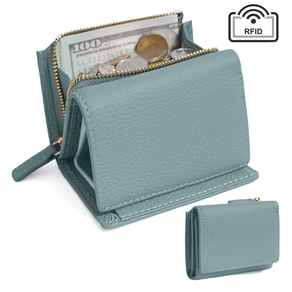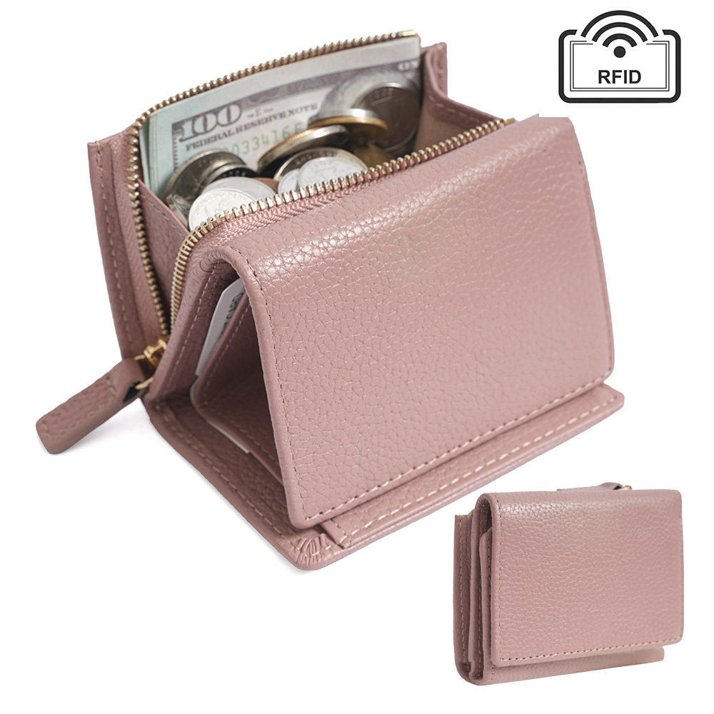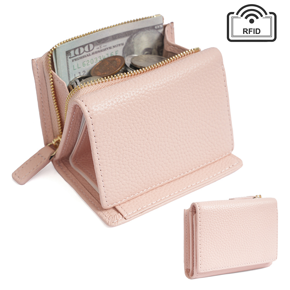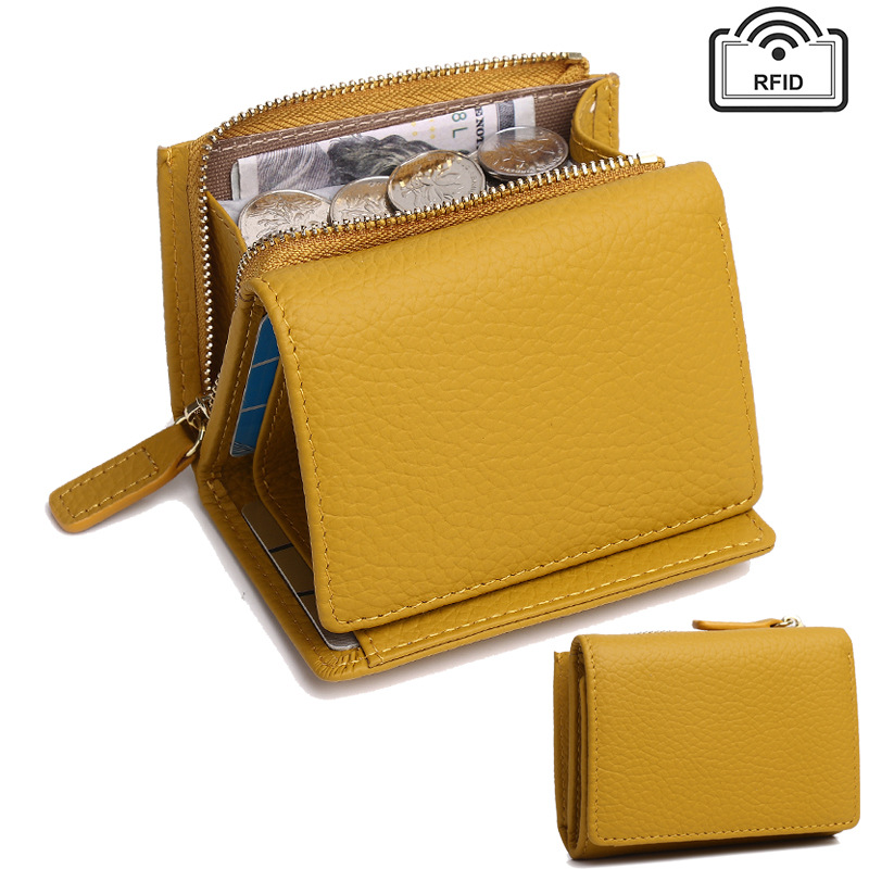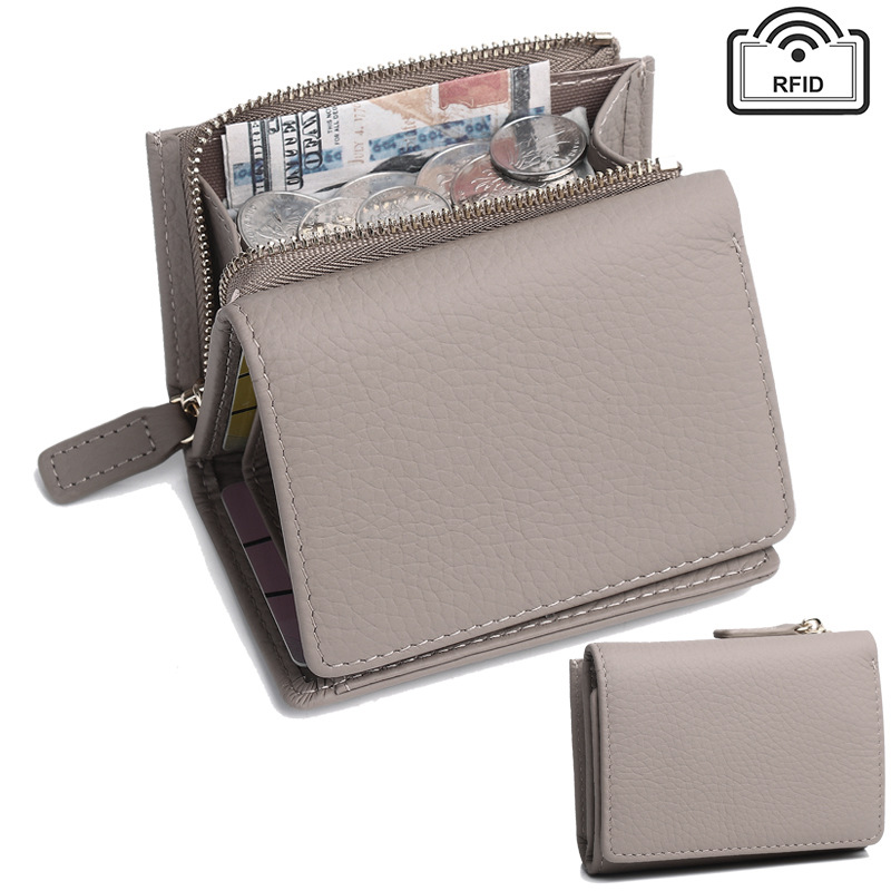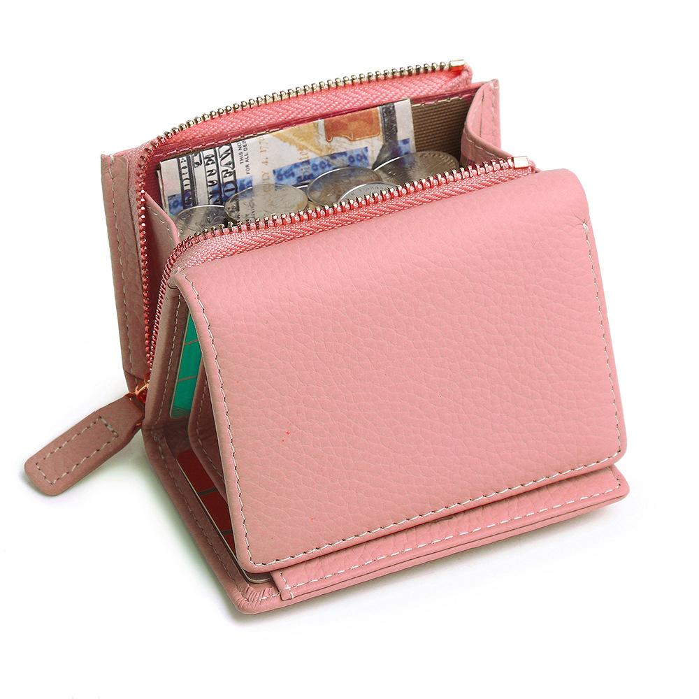 钱包女 短款折叠小巧卡包牛皮拉链迷你零钱包