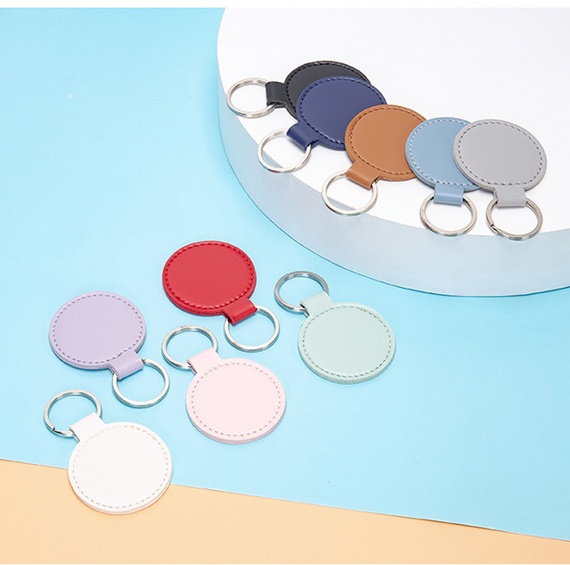 빈티지 창조적 인 PU 가죽 키 체인 모방 가죽 라운드 키 체인 가방 액세서리 펜던트 자동차 키 체인